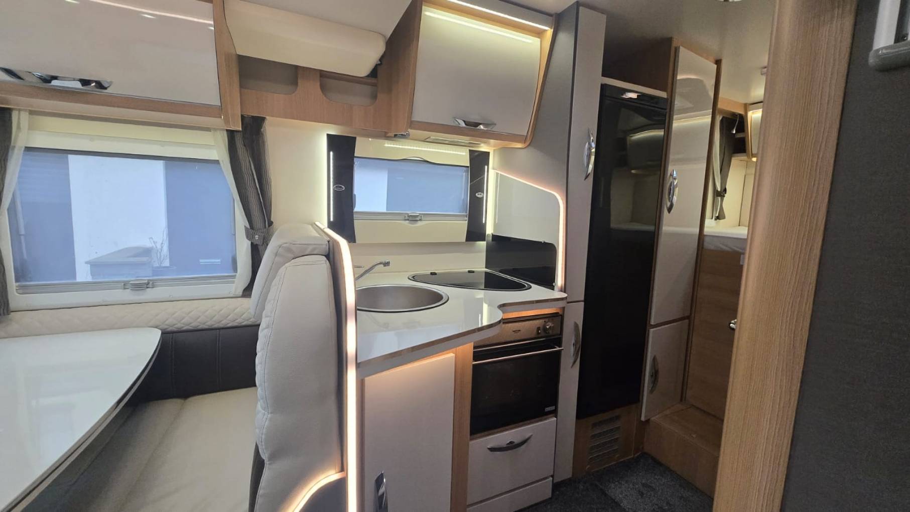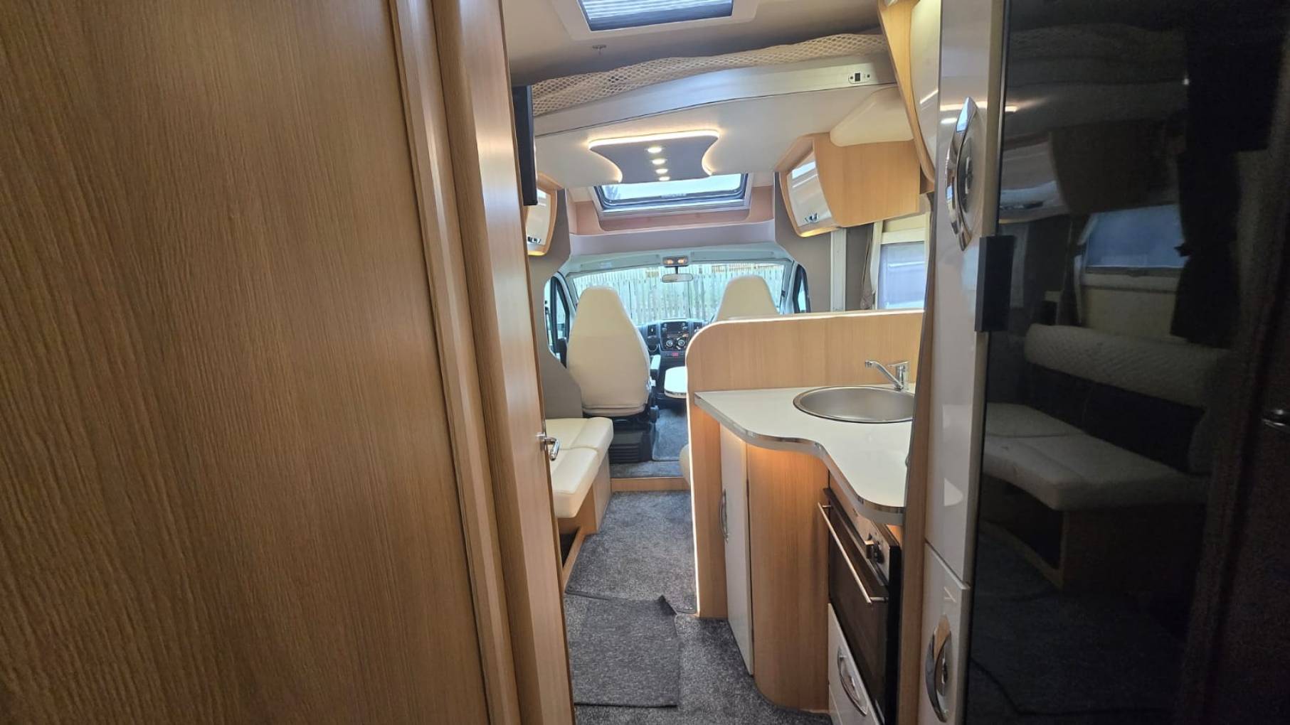 It’s based on the 140bhp 2.3 litre Fiat Ducato diesel engine with a MAM weight of 3500kg meaning anyone with a standard UK driving licence can have the pleasure of driving and adventuring in the motorhome. Its length is 6.99 metres and its width is 2.3 meters.