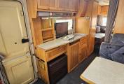 It is a 4-berth layout with four belted travelling seats. Sleeping arrangements consist of a front drop-down bed above the cab and a rear U-shaped lounge that converts into a double bed.