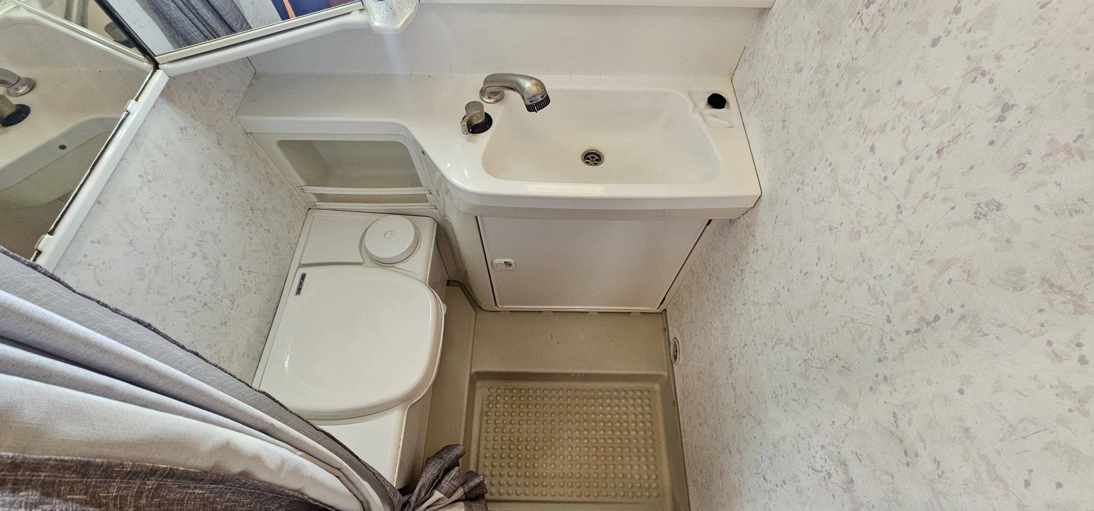 Heating is provided by a small gas heater, and hot water is supplied via a Truma boiler.