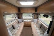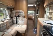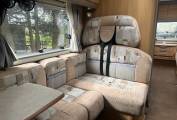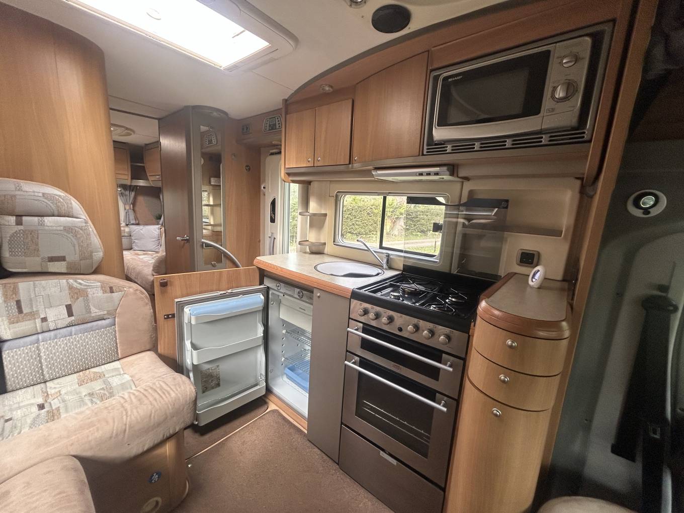 As mentioned this motorhome has an excellent layout for the family. Starting at the back you have a lovely U-shaped lounge which is the perfect place to put your feet up and relax. This area also converts into a large double bed (215cm x 140cm) or can be used as 2 singles (length 190cm max) if you prefer. Moving to the front of the motorhome you have great space that can be used as a dining area or second lounge. On one side you have a large L-shaped sofa and on the other an extremely well equipped kitchen. The kitchen features an oven, grill, hob with 3 burners and hot plate, 3-way fridge with ice compartment, sink with mixer tap and microwave oven.