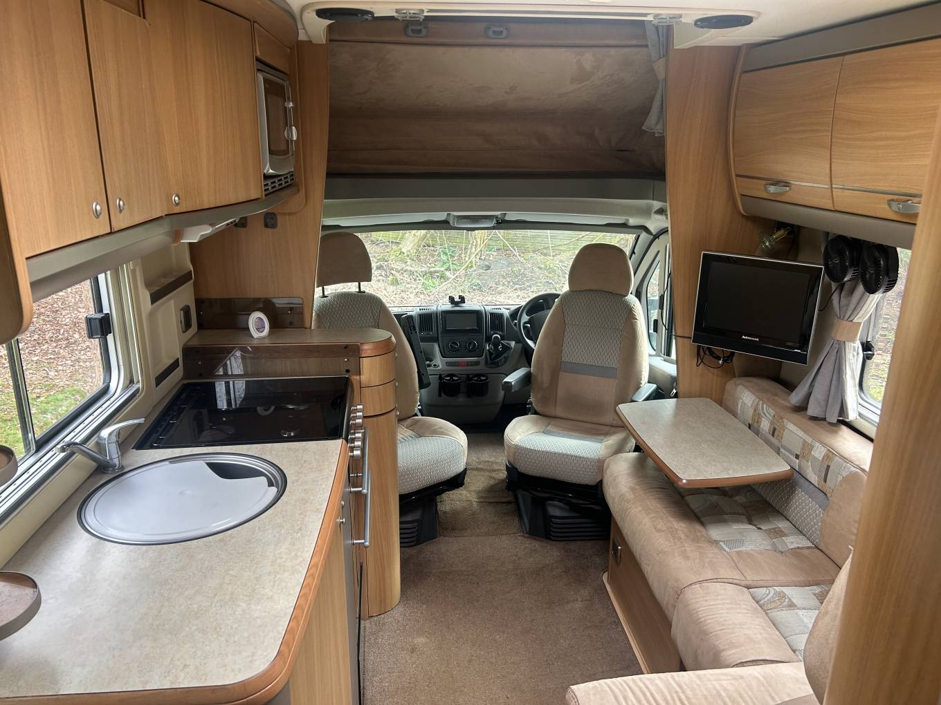 This motorhome is built on ever popular Fiat Ducato chassis and has a 2.3l engine with 6 speed manual gearbox and 130 bhp. It has cab air conditioning and the current owner has fitted a media centre that allows Car Play - giving you access to Google Maps on your phone.