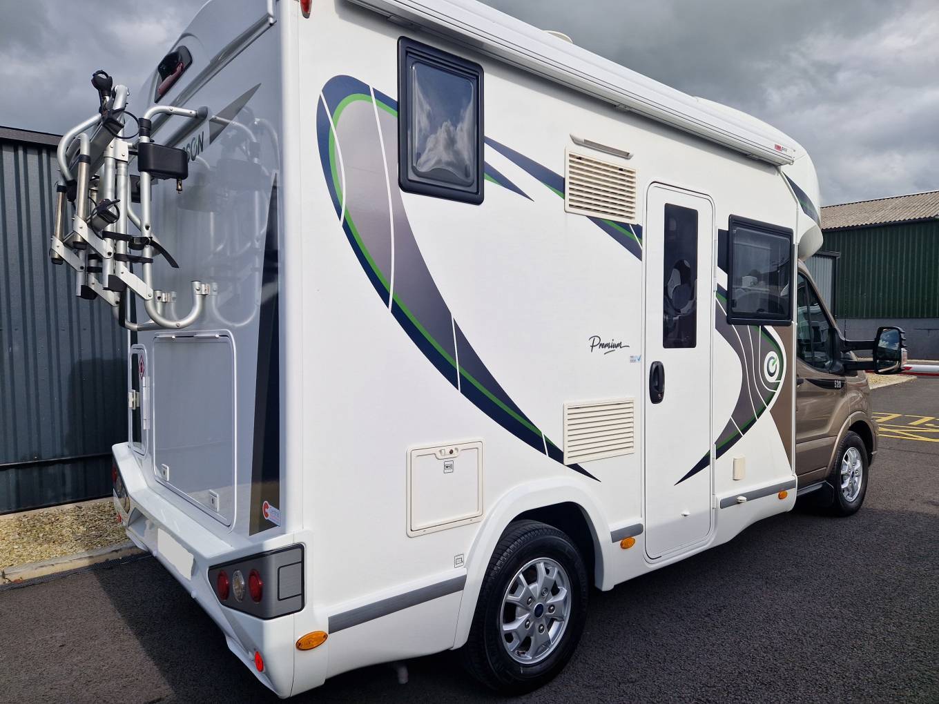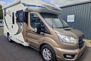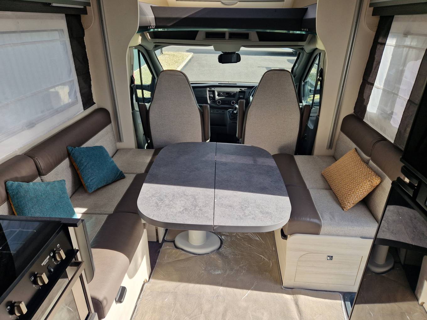 2020 Chausson 520 Premium 4 berth low profile motorhome for sale. Presented in beautiful condition with a huge specification, this compact layout offers great use of space and comfort to match. The maxi lounge area includes 2 swivel chairs and can seat 6 persons easily, 4 travel seats, and a drop down double bed with the advantage off an additional 2 berths made up from the lounge seating. The mid ship kitchen is well equipped with plenty of storage and a large automatic fridge freezer. The rear washroom can be closed off from the main lounge area and includes a separate shower and wardrobe. Other features include Ford 3500kg chassis (standard car license required) colour coded cab, alloy wheels, awning, bike rack, reverse camera and sensors, solar panel, on the road heating, Led lighting, cab shades, cab air con, cruise control, large rear hold area with shelves, mirror covers and TV with aerial. Sale includes full mechanical service, gas certificate, MOT and 1 years warranty. Finance available. Please call for further details….