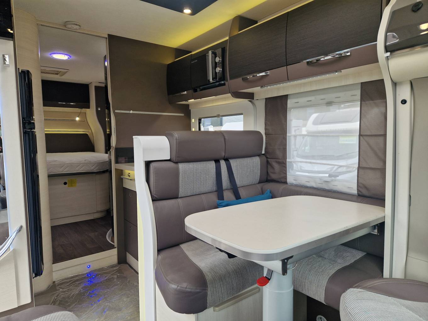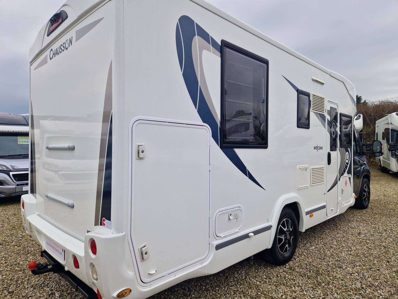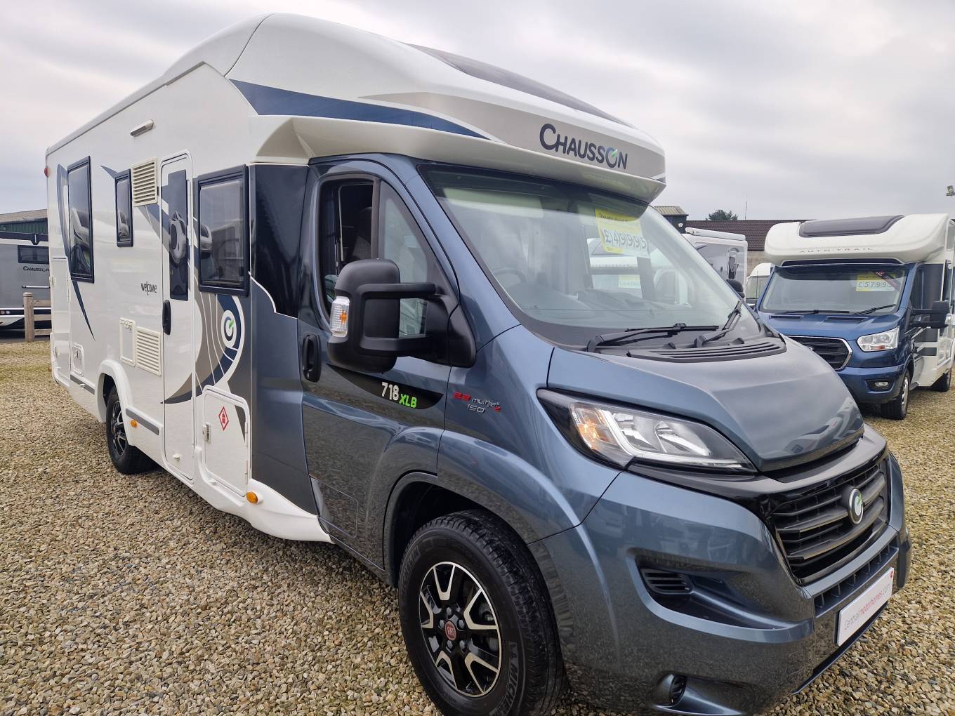 2017 Chausson 718XLB Welcome fixed bed motorhome for sale. Presented in nice condition with just under 17,000 miles this high specification model has much to offer. A rear fixed bed includes ensuite washroom with separate shower and enables a full garage beneath which can be adjusted in height to carry bikes etc. A midship washroom is fully equipped with oven, grill, fridge freezer, microwave, hot water and sink. The front lounge area is open and spacious with twin swivel chairs and 2 additional travel seats. Other features include Fiat Ducato 3500kg chassis (standard car license) colour coded cab, alloy wheels, slide out Dometic BBQ, towbar, air suspension, remis cab shades, gas low, cab air con, reverse camera, cruise control, solar panel, TV and satellite and much more. Sale will include habitation inspection, mechanical inspection, MOT until December 2025 and 6 months warranty.