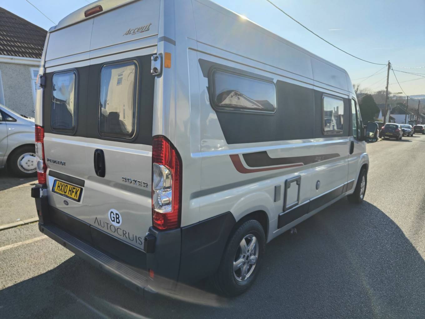 This is a really nice example of the Autocruise Accent high top camper based on the chain driven Peugeot Boxer 2.2 hdi with cab aircon, cruise control and a 6 speed manual gearbox. This long wheel base camper is 6 metres long and features a lovely U shaped seating area to the rear with a half dinette to the front that utilises the 2 rotating Captains seats. 2 berth with 4 seatbelts. There is a lovely kitchen and functional bathroom with shower and toilet. 77k miles from new. Extras include an omnistor awning, tv aerial and alloy wheels. Based in kent and more pictures available. Priced to sell.