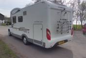 The motorhome is based on the Fiat 2.3ltr diesel engine 130bhp, with 6-speed manual gearbox. The GVW is 3500kg which means it can be driven on a standard UK driving license and measures approx. 7.37 metres in length. The vehicle comes with electric windows and mirrors, radio, cab air con, cruise control, reversing camera and sensors, alarm and subscription tracker, aerial, Truma heating and hot water system, bike rack and that huge garage.