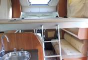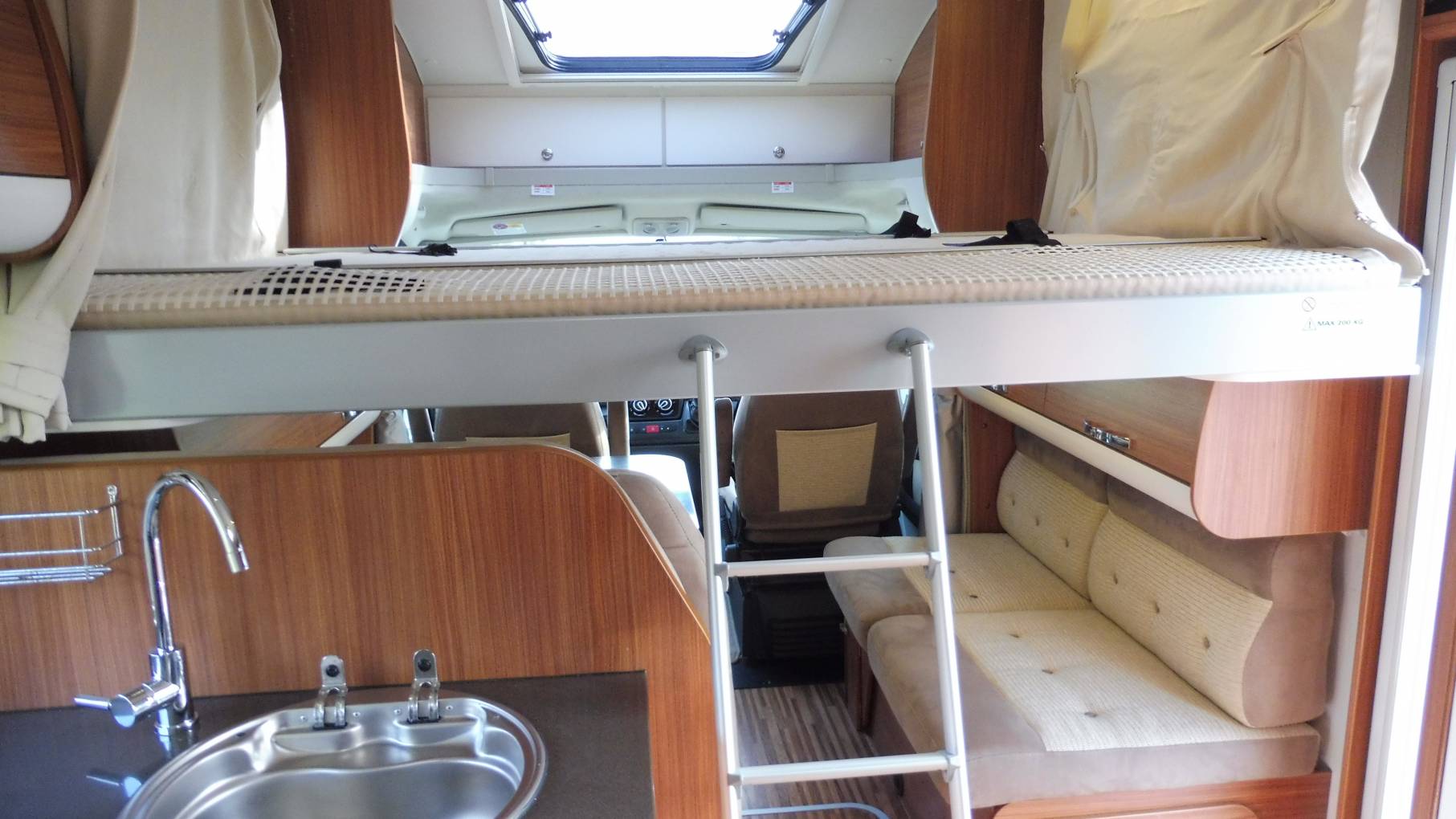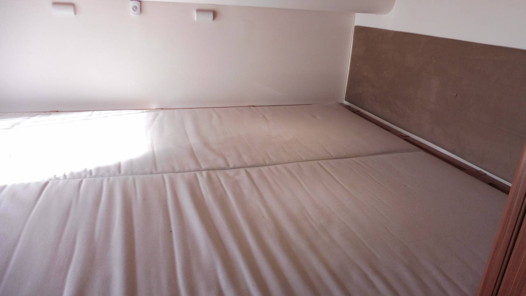 This dinette area can be converted into a double bed at night and above you will find the electric drop-down double bed.