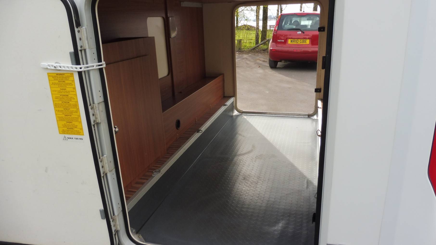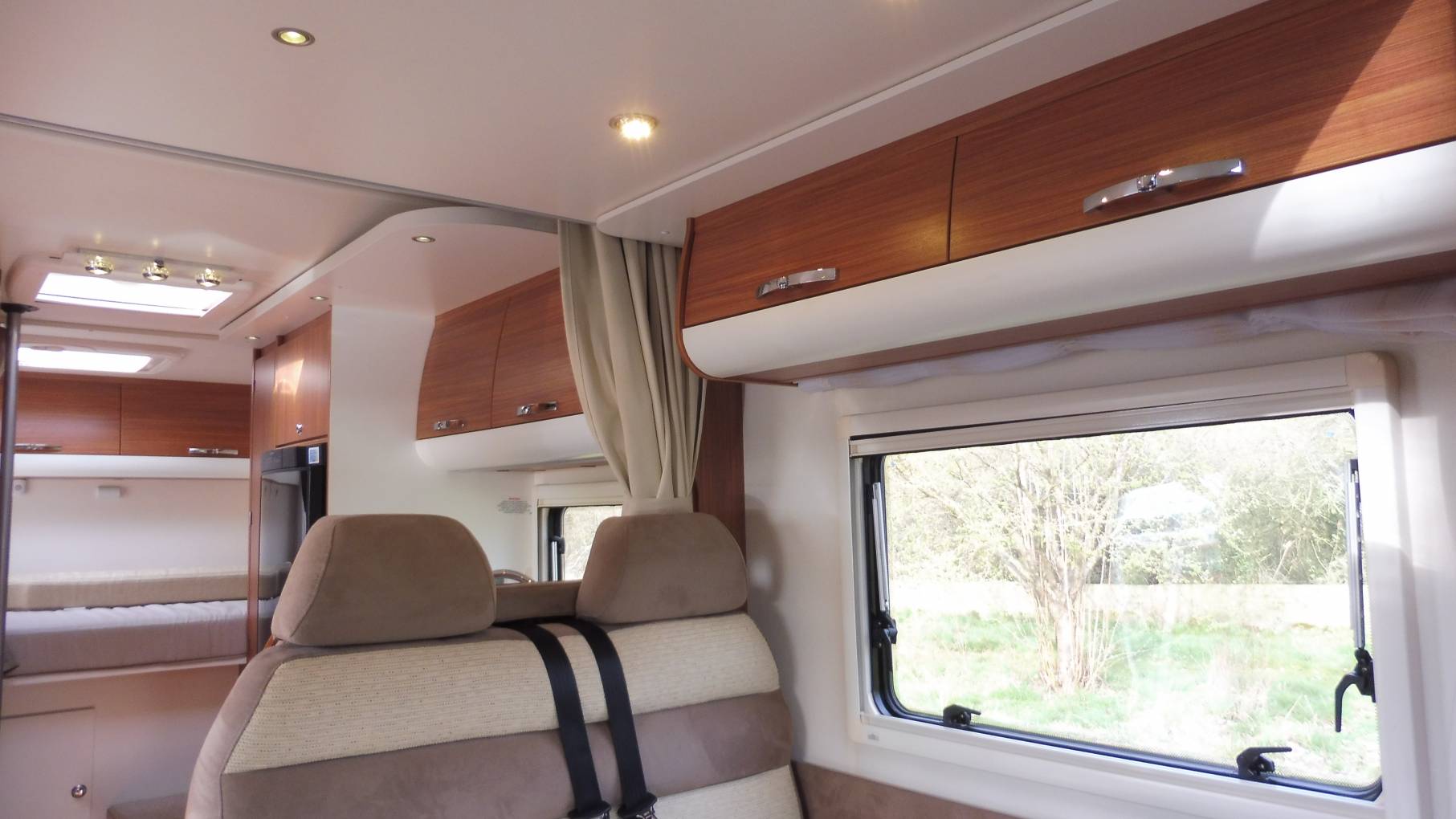 To the rear you will find the transverse bed, which is positioned above the large garage, which can be accessed via two external locker doors or by a small internal door. Above the bed you will find ample eye-level storage.
