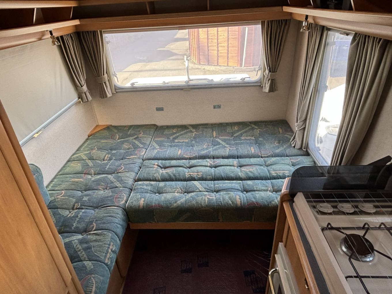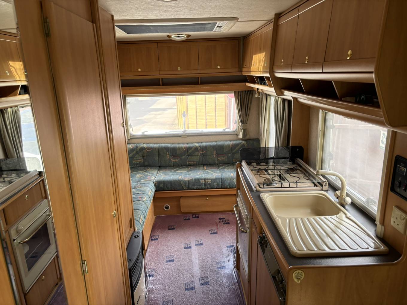 Excellent specification includes: Gas blown air heating, Fiamma wind out awning, Thetford flush cassette toilet, Hot/cold shower, roof vents, flyscreens/blinds and curtains, Large Heki roof light, Electrolux 3 way fridge/freezer, removable table, 3 ring gas hob, gas grill, gas oven, sink with hot/cold water and drainer, 12v control unit, leisure battery, fresh water tank, grey water tank, loads of storage cupboards, CD player, 240v hook up, 240v sockets, wardrobe, loads of storage cupboards, removable carpets.