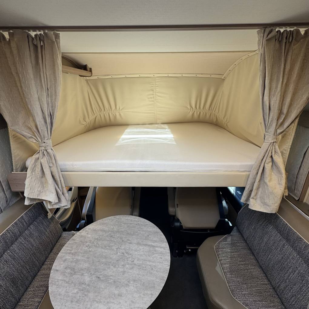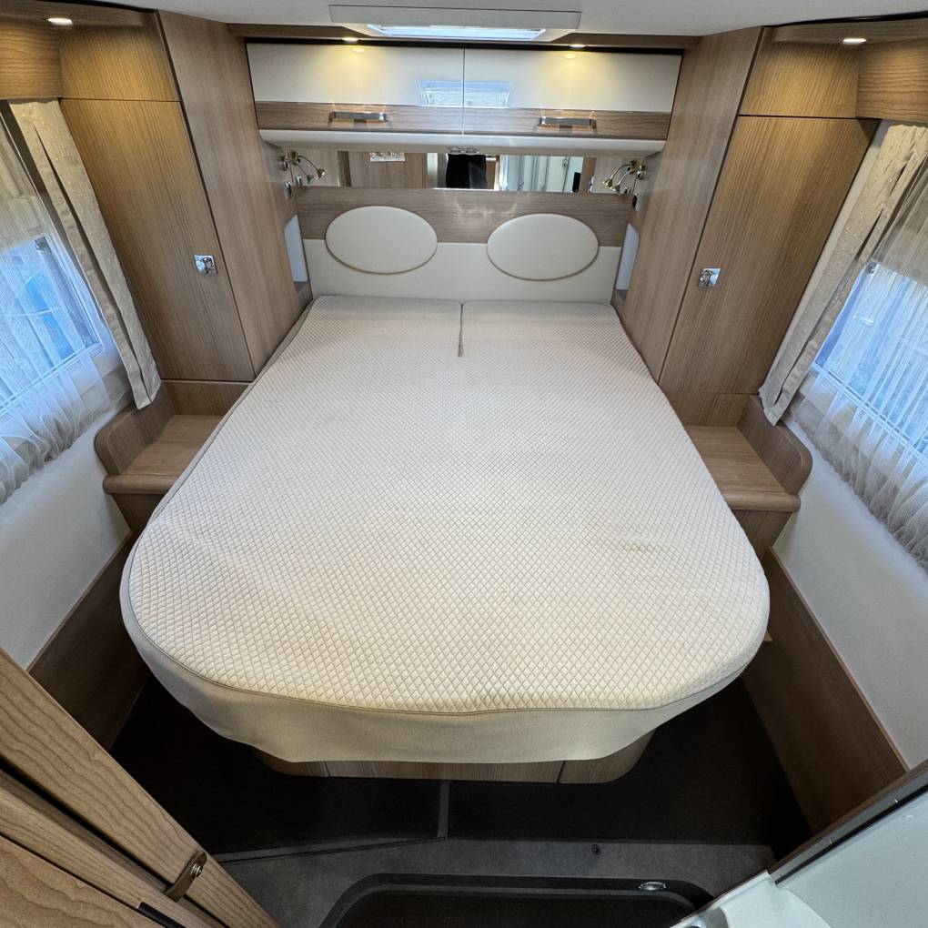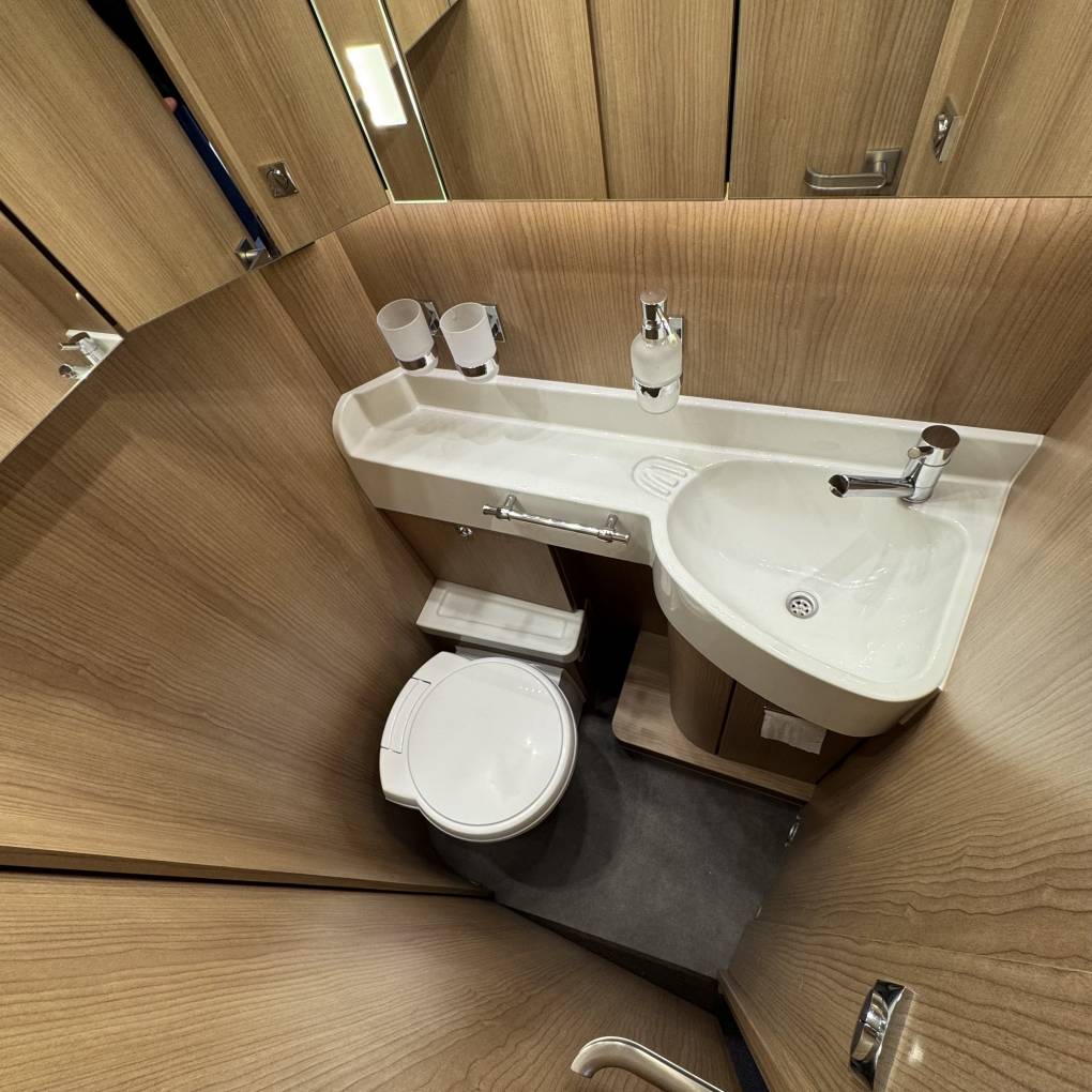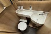As mentioned the I 500 QB is exceptionally comfortable to sleep in. It has a super comfortable queen sized Island bed at the rear and and even bigger pull down bed at the front. There is a spit washroom featuring Thetford cassette toilet and sink on one side and separate shower on the other. Heating and hotwater is provided via the excellent Truma Combi 6.