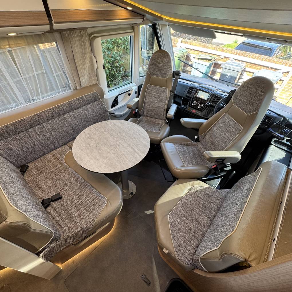 The Carthago Malibu I500QB is the height of luxury and this 4 berth with 4 traveling seat belts is the perfect escape for any type of holiday. Carthago are renowned for the highest build quality and stunning interior and this motorhome is no exception. This 2021 model was registered in July 2021 and has so many outstanding features, it has a lovely comfortable living area and is amazing to sleep in with two enormous beds including a Queen sized fixed Island bed at the rear. It comes with loads of storage space including an extremely large garage with load capacity 250kg, ideal for electric bikes and anything else you wish to take on long trips away.