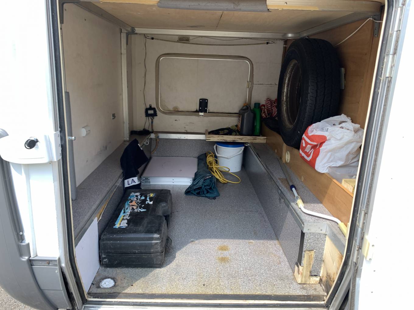 underslung 50 litre LPG tank, 2 solar panels feeding 2 leisure batteries with