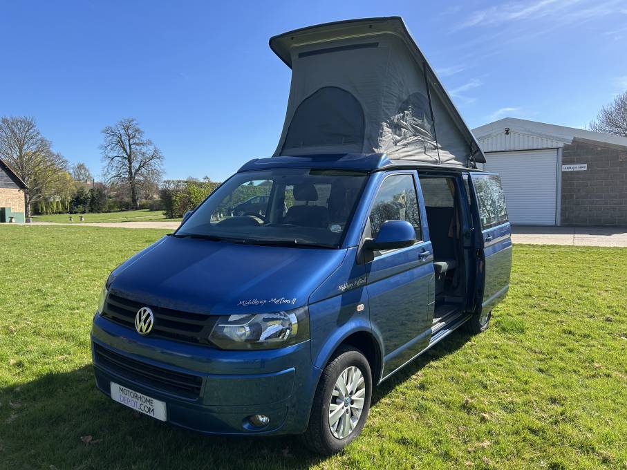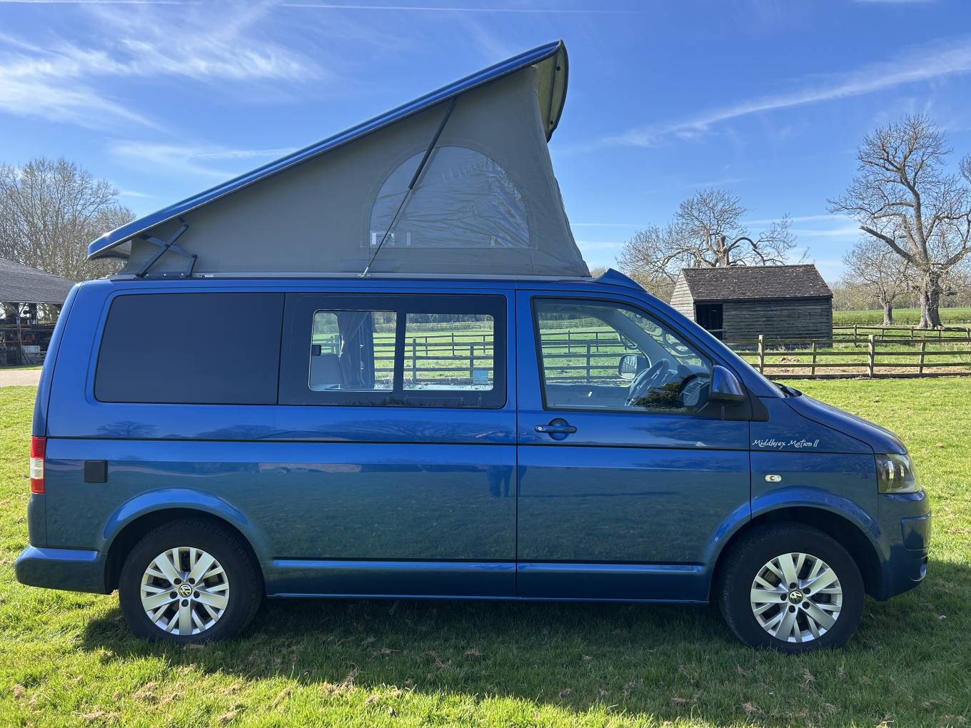 Finished in striking Olympian Blue this VW Transporter T30 has been professionally converted to a high standard by Middlesex Motorcaravans.