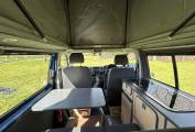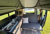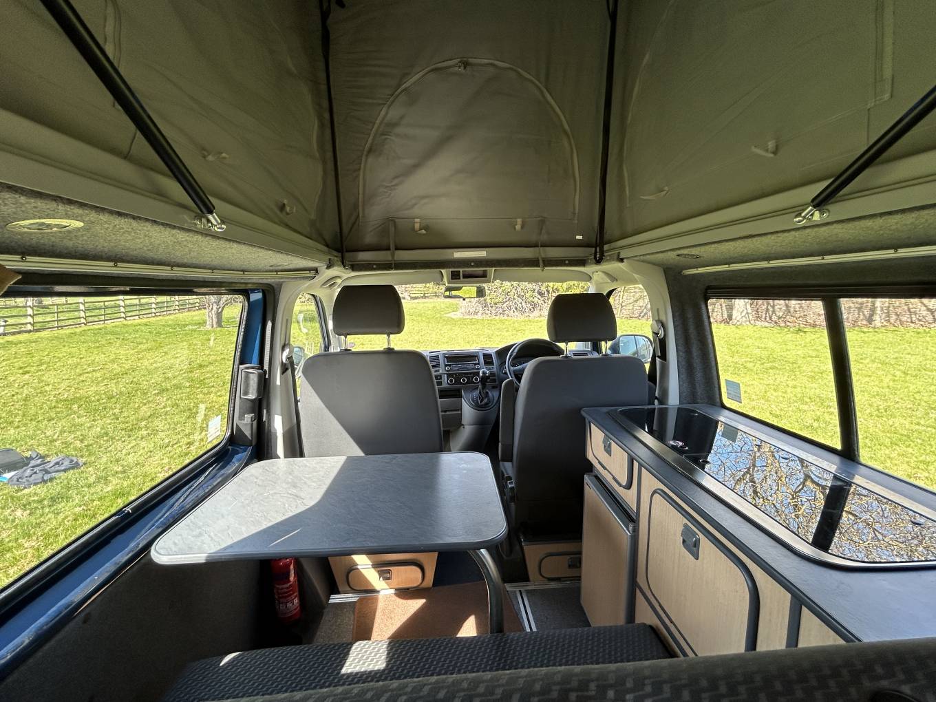 Based on a VW Transporter T30 Highline 140 TDi this camper comes with cab air conditioning, cruise control, driver and passenger airbags, electric windows and mirrors and a radio cd player.