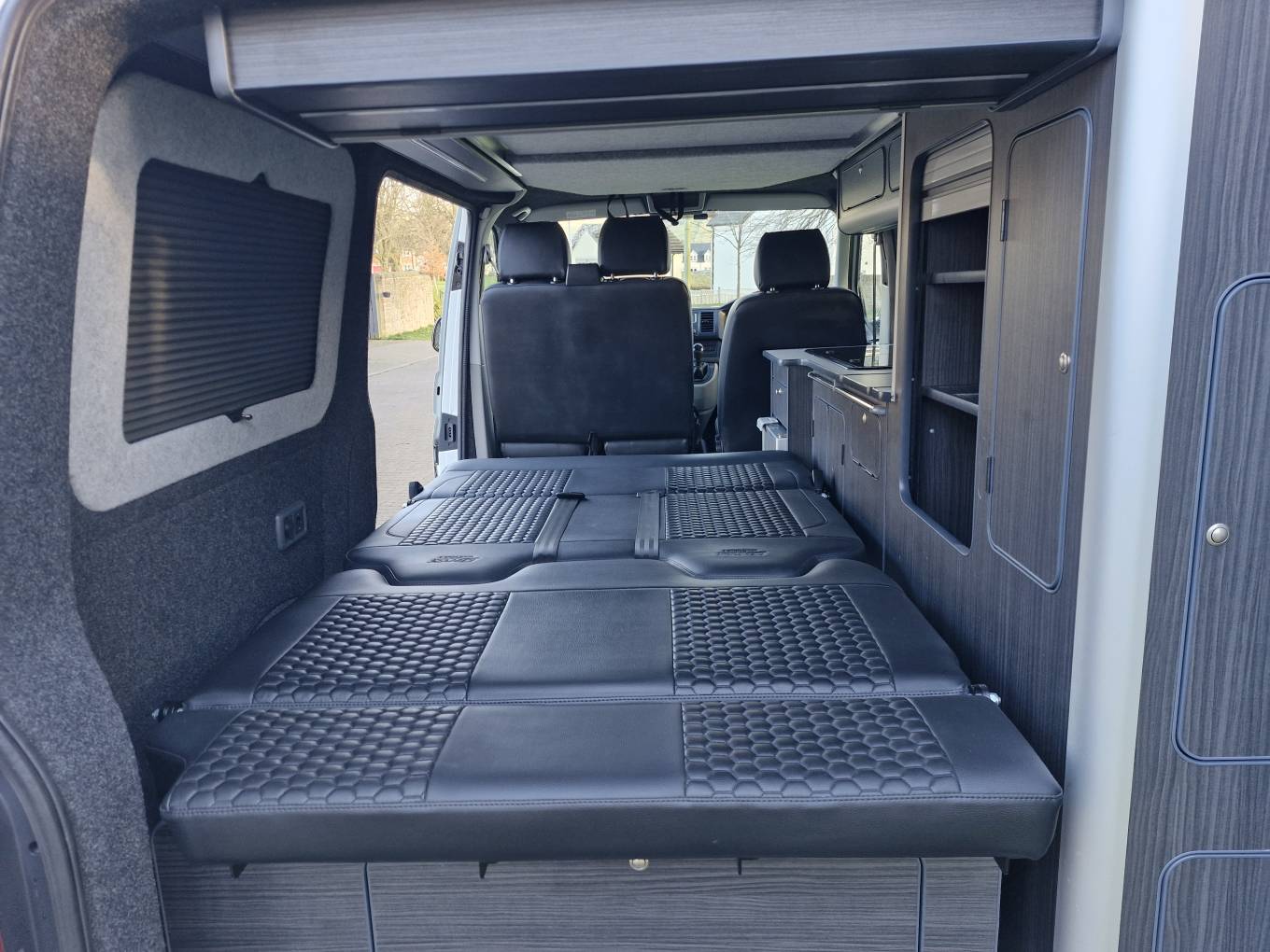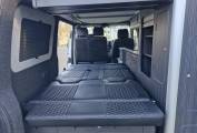 bed platform. The front passenger bench seat swivels to play it’s part in