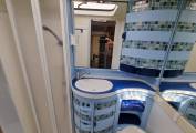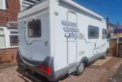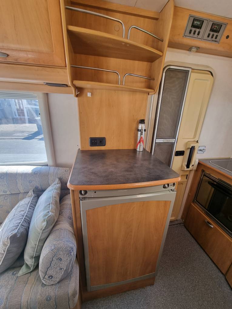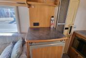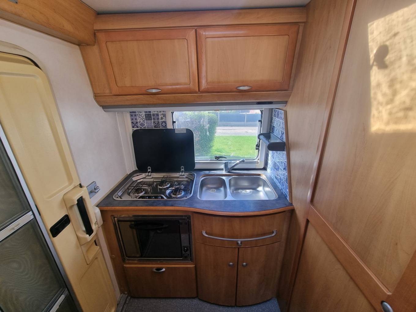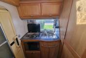 At the rear your compact kitchen features a 3 gas burner hob, sink, 3 way fridge freezer. The spacious washroom has a separate shower, vanity style wash hand basin and a cassette toilet.