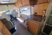 Lounge area has a 3 seater bench seat that will convert into a single bed. The forward facing captains chair has a 3 point seat belt and the front captains chairs swivel round to comfortably seat up to 6 people. Drop down large double bed above the cab will accommodate 2 people.