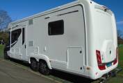 Outside: Rear Garage with 2 access doors, tow bar with electrics, Fiamma wind-out sun canopy, Satellite Dish, Solar panel. Rear mounted spare wheel, gas bbq & shower point, reversing camera, tv aerial, 2 leisure battery & LPG silent generator.