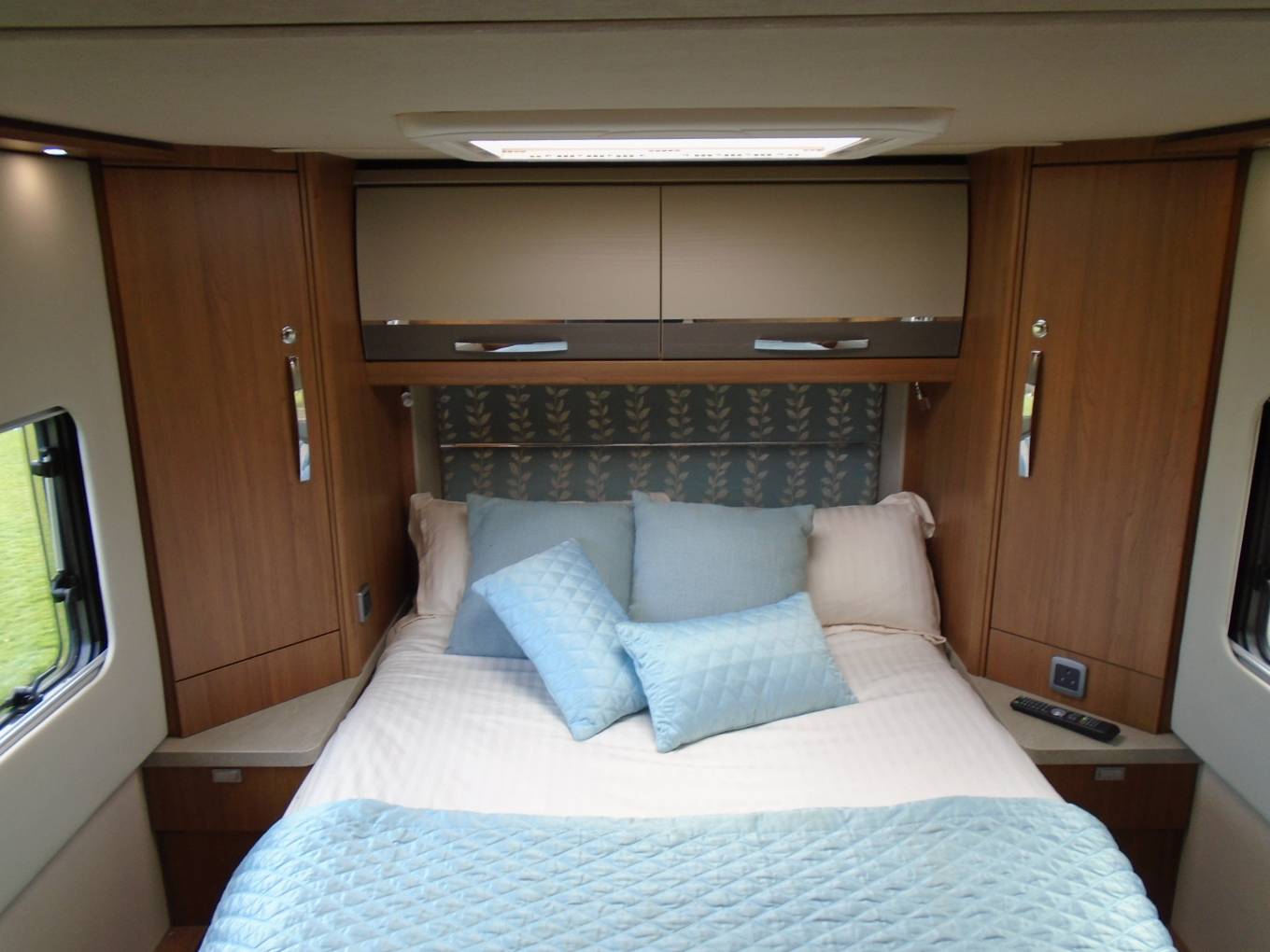 Rear Bedroom: Fixed island bed, which raises to reveal a storage area. His & Her wardrobes with drawers below, upper lockers, TV included, large windows & sunroof make it light & airy. The toilet door doubles as a privacy door.
