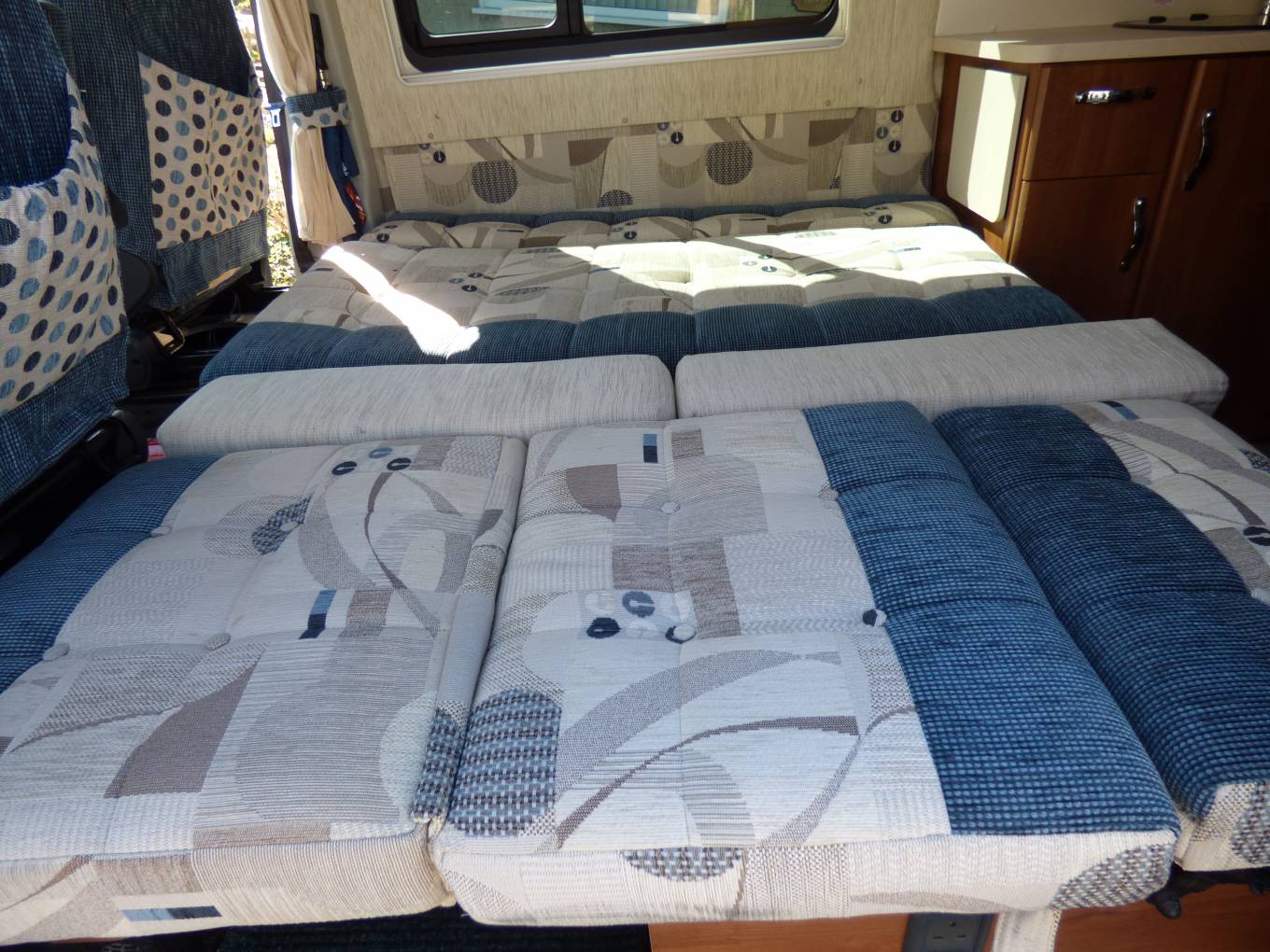 With 3 seat belts and two berths made up from the side bench seat and the rear single seat, this motorhome is ready for it's next adventure. In the same family since new, the motorhome has very low mileage for it's age and comes fitted with reversing camera and bike rack. It also has a wind out awning and Alko Airtop suspension.