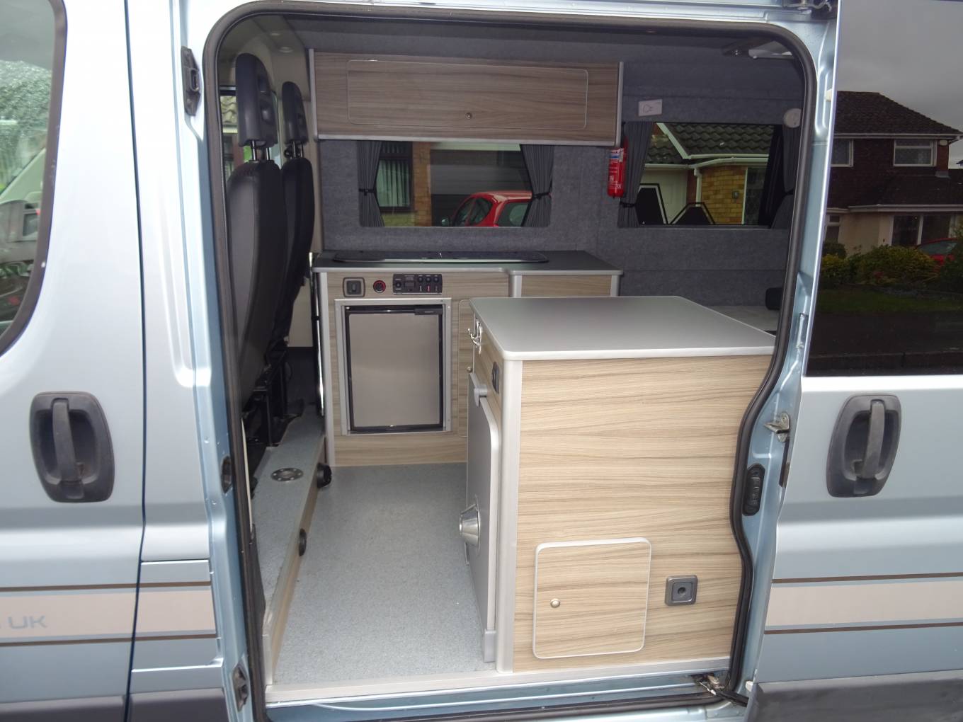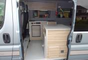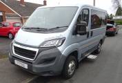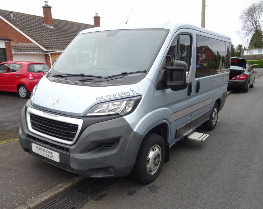 Peugeot Boxer 333 L1H1 HDI, Leisure Van Uk camper conversion, Blue colour, a six-speed manual gearbox with cab air conditioning and front and rear sensors.