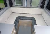 converts into a double bed. It’s fully insulated with a diesel heating system. Fiamma