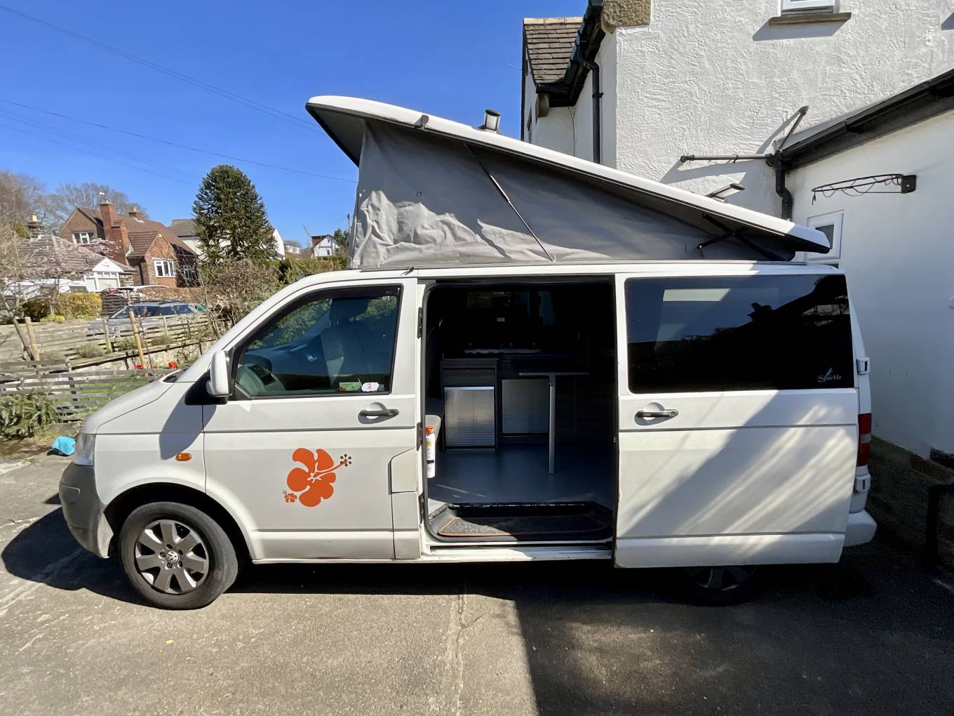 Converted to a high standard, this VW T5 campervan comes equipped with a host of features, including a solar panel, tow bar, roof bars, upgraded Kenwood infotainment system, reversing sensors and more. This VW is the 102 horsepower with manual gearbox and drives well.