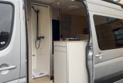The bathroom is generous in size with a shower and a comfortable porta loo nestled in a large shower tray with a shower curtain for added privacy. No fear of running out of hot water as this vehicle has a 140ltr water tank tank and has the luxury of hot water heated by Trauma heating and Boiler system which operates off the leisure battery, hook up and by the 'Gas It' System which is underslung on the vehicle and holds 55ltrs of gas to ensure that there is plenty for long periods of time off road. Along with a solar panel there is enough power to ensure that your off road trips are sustainable.