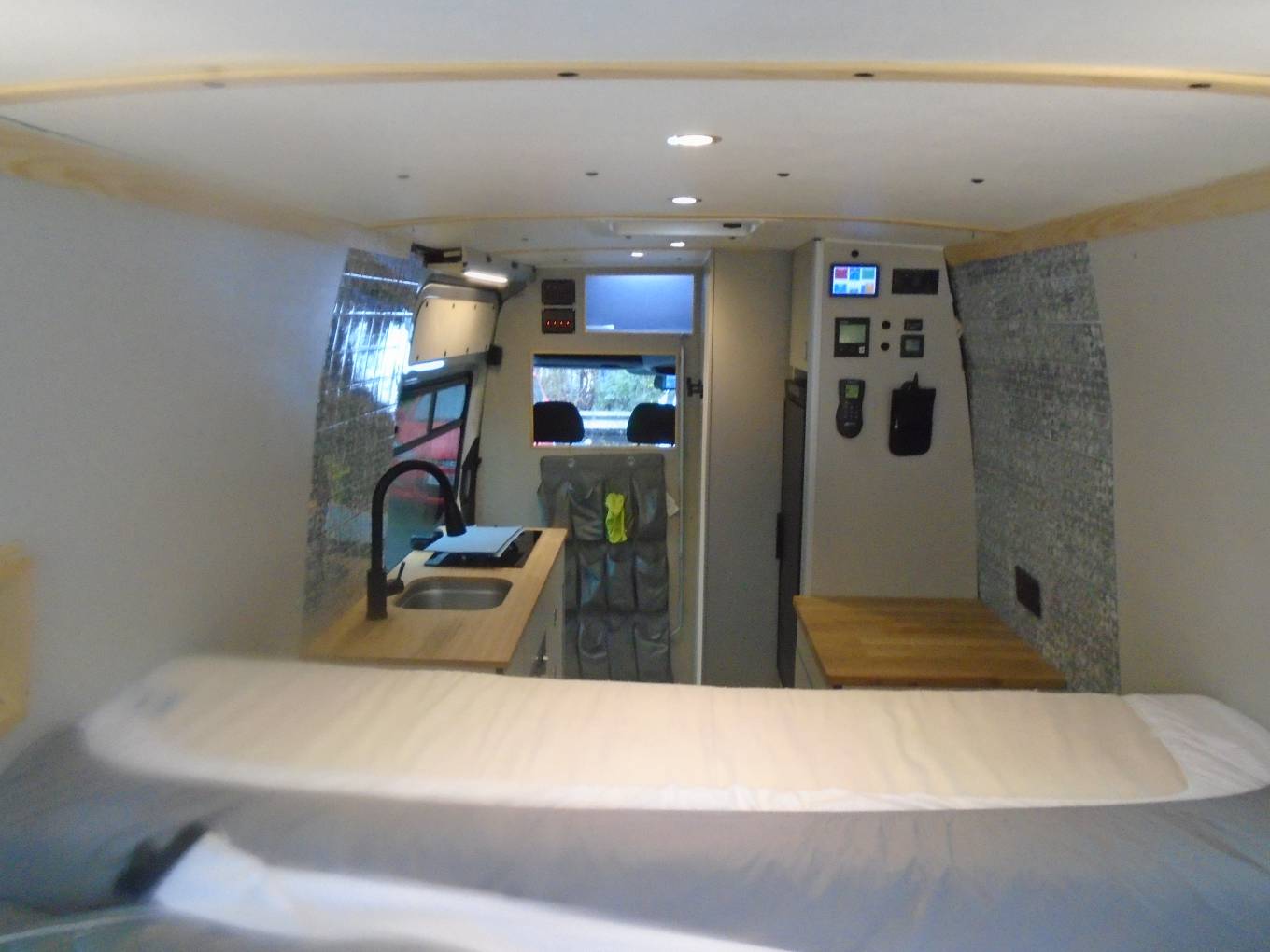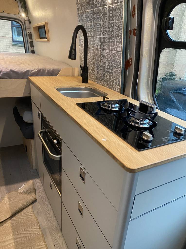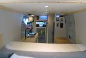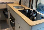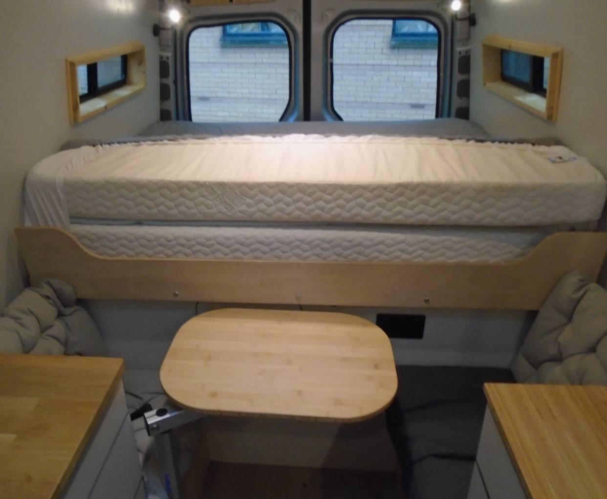 To ensure the comfort of this vehicle the owner has designed the living area to compact and functional while making maximum use of the space to ensure comfort. With of two seats and a table that can be assembled and then stowed away for travel there is comfort while using this are to dine at or to be used as a functional work space. There are easy to reach sockets and USB plug points to charge electrical equipment, and with the Victron Electrical system, power is a plenty allowing ordinary household items to be used such as a kettle or hairdryer! All upgraded electrics were filled by Motorhome Workshop.