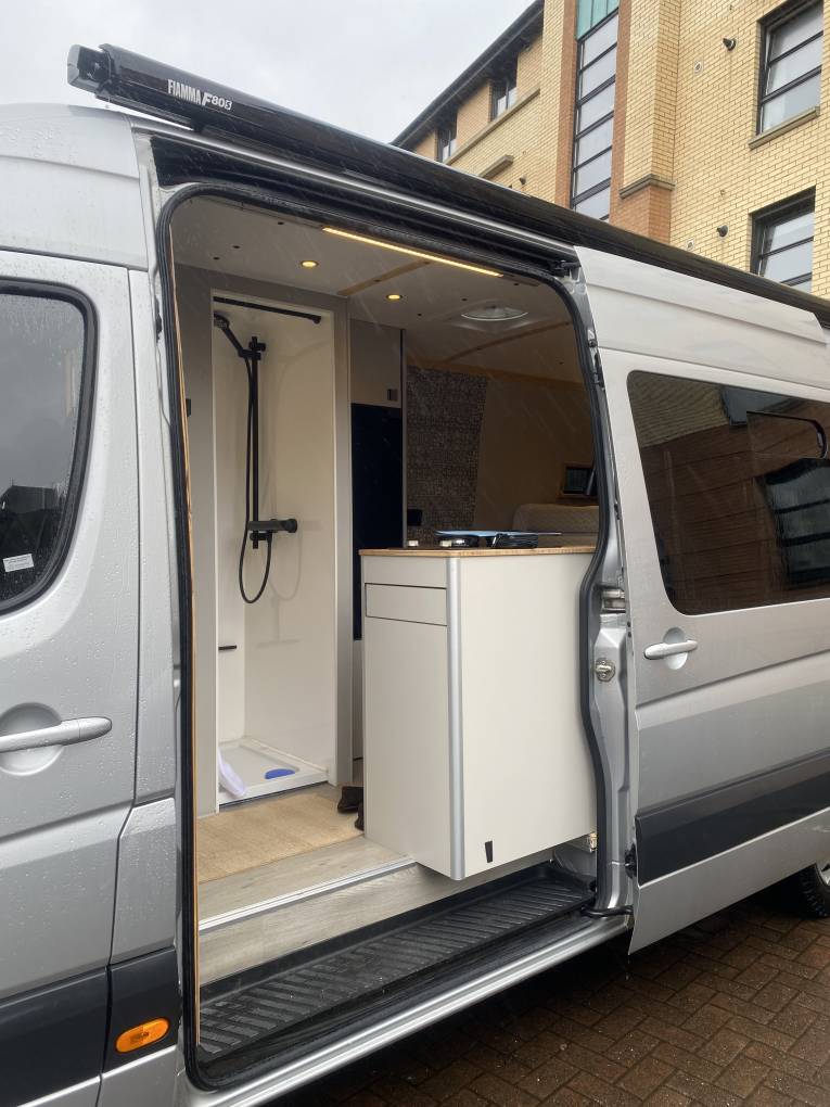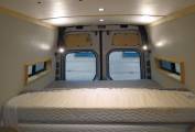 The sleeping area converts into a Queen Size bed for extra space and comfort with ample storage space within easy access under the bed with adequate lighting and USB points throughout. There are pull down blinds in the sleeping are and the drivers cab has bespoke magnetic window blinds for added privacy.