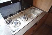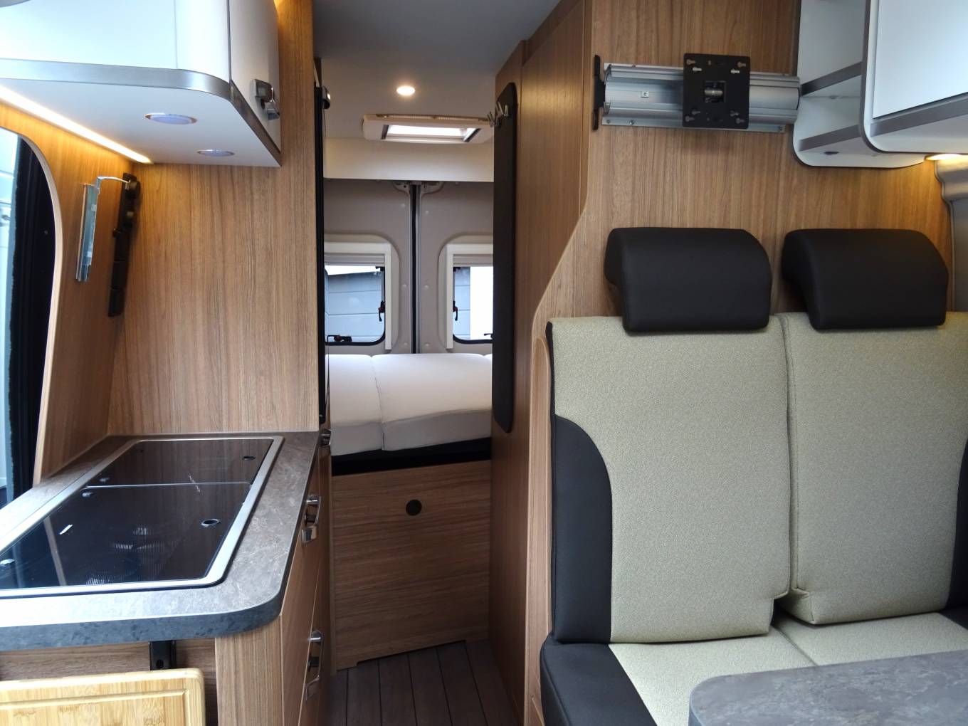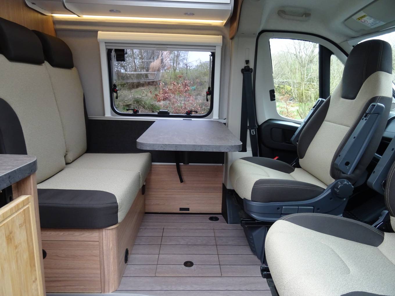 Internally at the rear it has a double bed which can be adjusted to create extra storage space. Moving forward, you will find the galley kitchen which has 2 gas burners, fridge freezer and sink. Opposite is the Never used washroom that includes a toilet that swivels, shower attachment and sink. In the forward dinette there are 2 forward facing seats with full seatbelts and an adjustable table that creates a third occasional bed when used with the passenger seat. Both front seats swivel, upfront in the cab is a Headup display, Pioneer media centre with the radio/ Bluetooth, 3 way dashcam , cruise control ,cab A/C and LED headlights. Other great features include, Truma Duel Fuel Heating and hot water, lots of USB and plug sockets, Remis blinds, plus flyscreen across full width and height of sliding habitation door and on all windows. Throughout there is plenty of storage space. ,