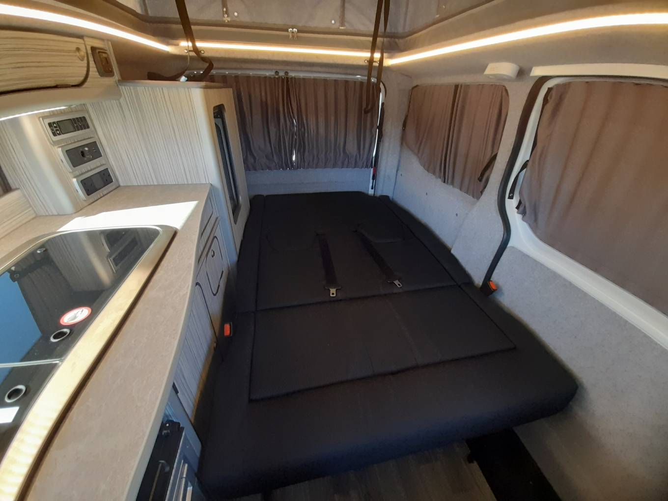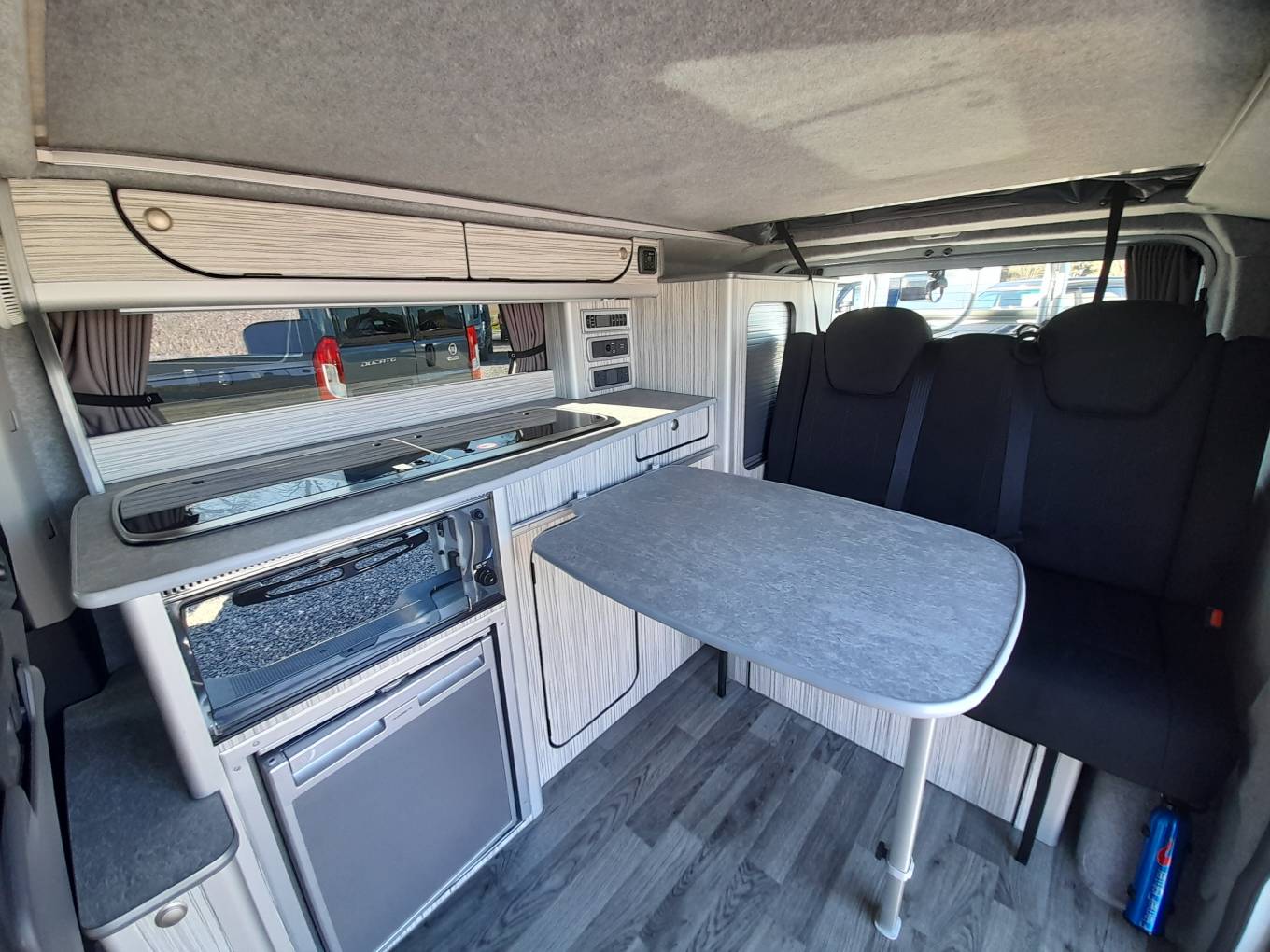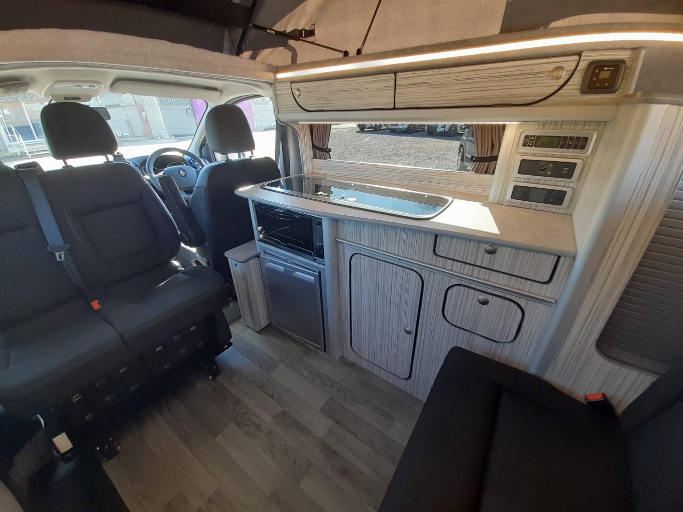 camper boasting a 2 Burner gas hob, sink with cold running water, Grill, 12v