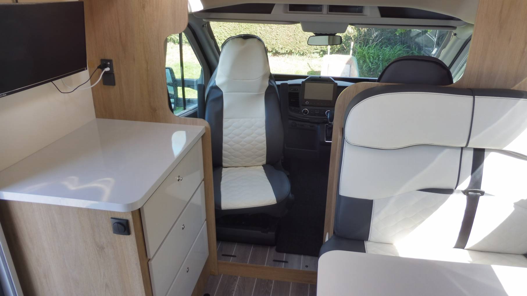 This motorhome has a great spec including a 4g Mi-fi for connectivity, Scorpion tracker, solar panel, bike rack and flyscreen for the habitation door. The cab comes equipped with cab air conditioning, cruise control, DAB radio with bluetooth connectivity, Sat nav, steering wheel controls, reversing camera and full cab blinds.