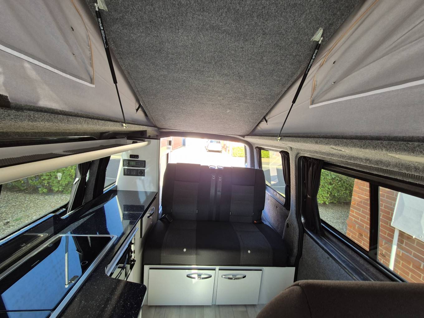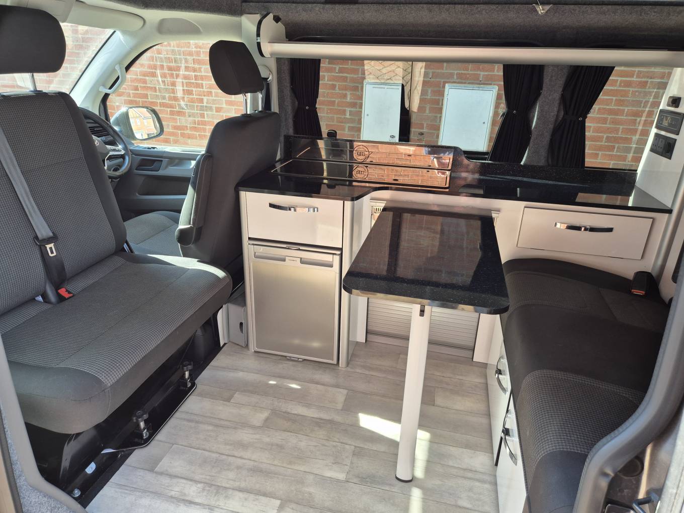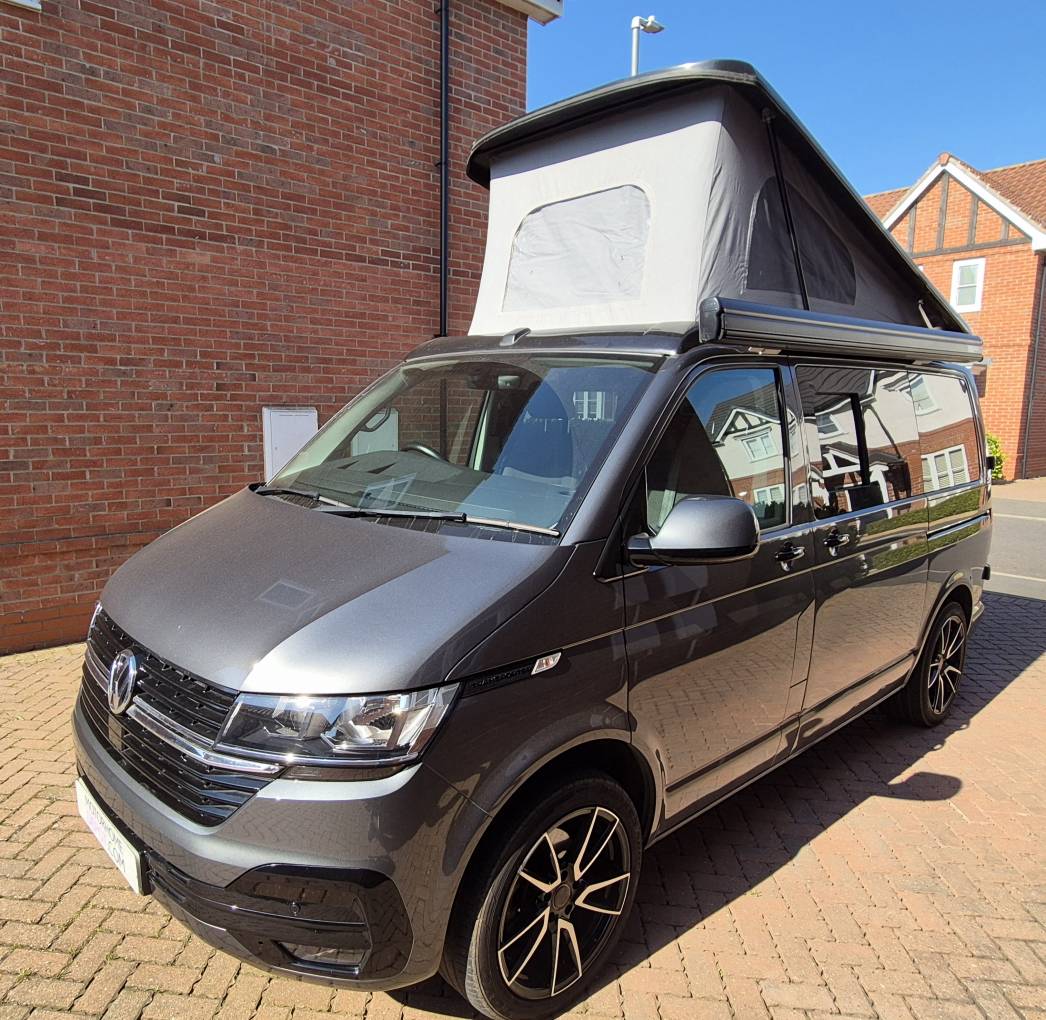 Motorhome Depot are please to bring to market this stunning 2021, 4 berth, 4 seatbelts, Volkswagen T28 Highline pop top Campervan. Based on a 2.0 litre Euro 6 AdBlue Engine with 6-speed manual gearbox, air-conditioning, electric window/mirrors, cruise-control, infotainment system + Apple/Android Car play system, hands-free phone, steering-wheel controls. This stylish campervan has been professionally converted to a very high standard and is ready for its next adventure combining comfort, convenience and functionality, this campervan is perfect for both short breaks and extended road trips. Entering through the side door we are greeted by the attractive interior with stylish white high gloss units complimented by black high gloss worktops. There is an abundance of storage along with a Dometic combination sink/hob, fridge (with freezer compartment) and a grill. The RIB rock and roll bed features two additional 3 point seatbelts and also creates a comfortable double bed. For Dining the front double passenger seat can swivel to allow four to sit around a removable table which can be stored neatly away in the back of the van when not in use . You will find the second sleeping area in the pop top which has a panoramic canvas giving plenty of natural light and when not being used it pushes up to maximise head room. Additional features; 19" Alloy wheels, wind out awning, tow bar, diesel heater, front and back parking sensors and heated mirrors and windscreen. WITH A FRESH MOT AND SERVICE THIS VAN IS NOW READY TO GO !