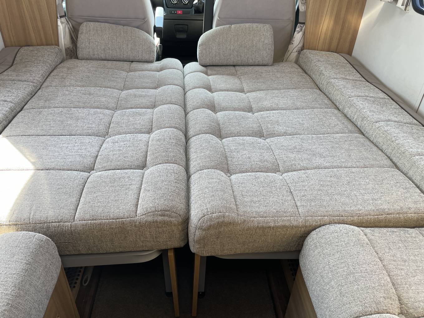 We can also arrange upgrades including solar panels, refillable gas systems, lithium batteries, bike racks, tow bars, WiFi systems, reversing cameras, and wind-out awnings.