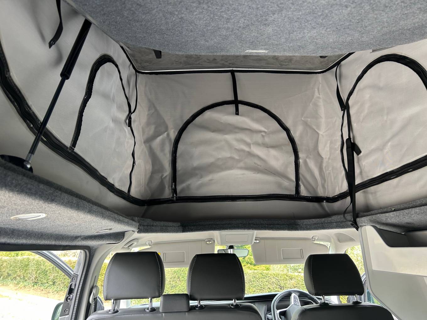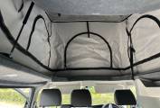 Excellent layout with sleeping places for 2 people in a very wide rock and roll bed with thick topper, and with sleeping for two more in the push up roof space. The sides of which, zip off for panoramic views all round. There are 5 travelling seat belts. The popular lounge area can be used for dining, sleeping and relaxing.