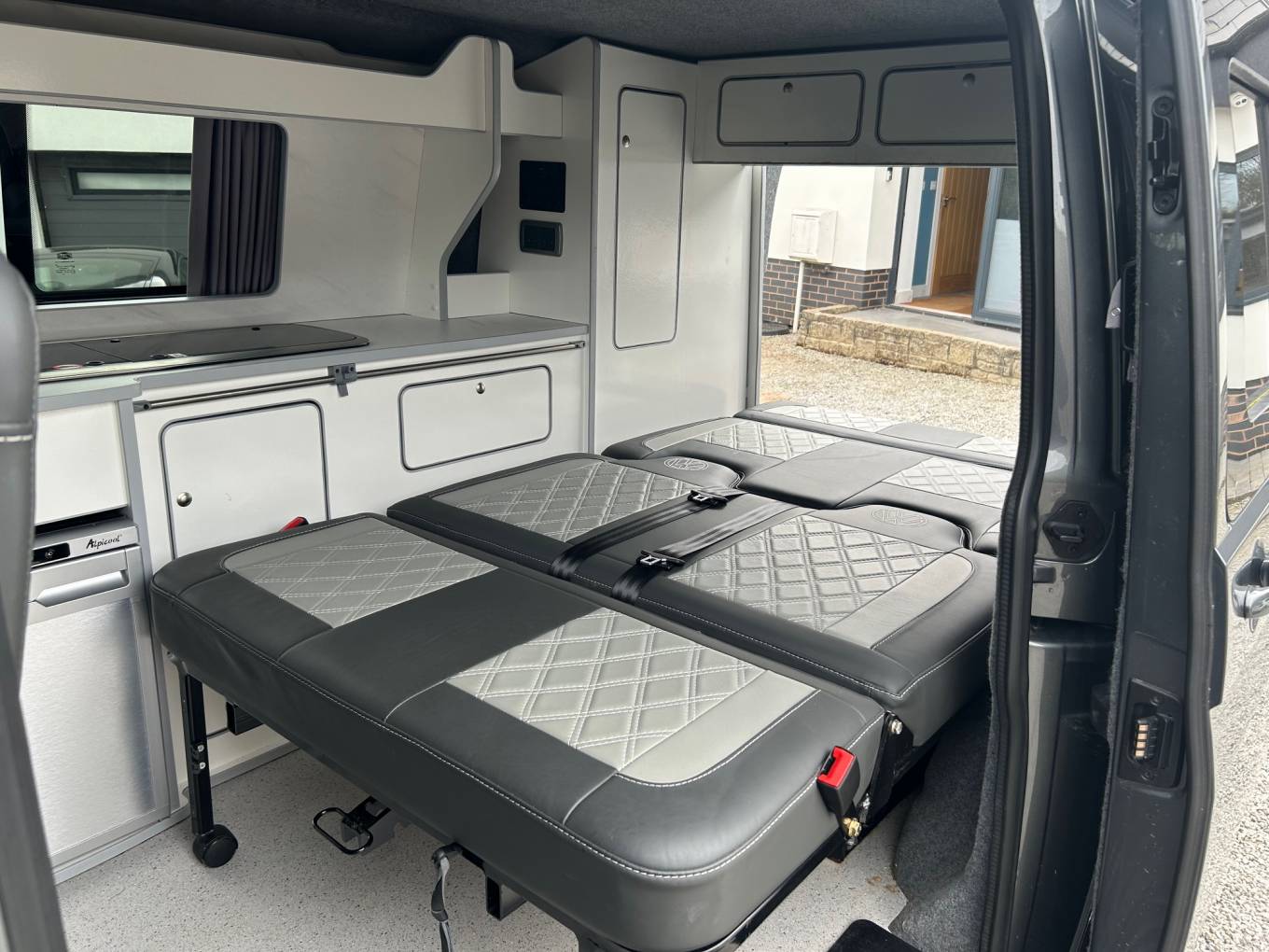 Finished in gorgeous charcoal grey and based on the VW chassis with a 2.0 Litre engine and Automatic transmission remapped to 200 BHP !!! This vehicle was converted by MAD Campers to a very high standard.