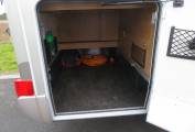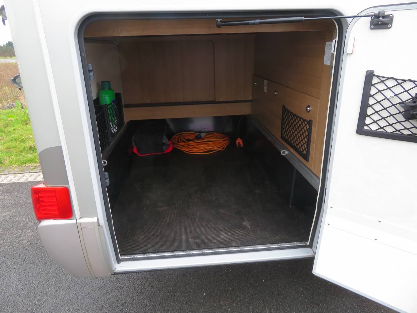 Although this motorhome is just 7.1m Long it is equipped with a large garage where bicycles, motor scooter or luggage can be placed inside through the twin garage doors with a special low entrance lip aiding loading, as well as several exterior storage lockers. The comfort entrance door has a window, sliding screen door and an electrically integrated entrance step.