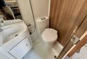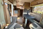 The kitchen is fully equipped with a 3-burner gas hob, oven/grill, sink, microwave, and a large fridge/freezer, while the bathroom offers both a toilet and shower. For extra comfort, the motorhome comes with Truma heating and hot water, and is designed with practical features such as swivelling cab seats and LED lighting throughout.