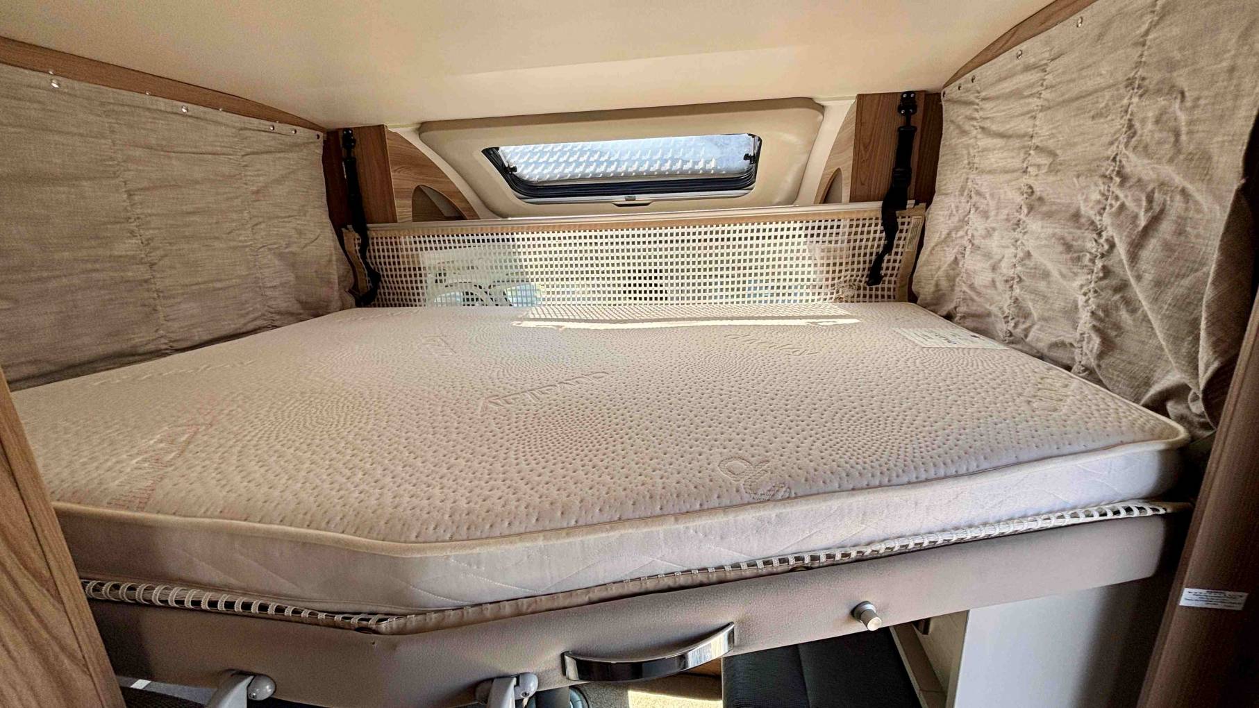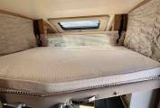 Inside, the layout offers flexible sleeping options with twin single beds at the rear that can easily be converted into a large double bed. These come with upgraded memory foam mattresses for added comfort. There’s also a drop-down double bed over the lounge area, plus the dinette converts into another double bed. This makes it an ideal option for families, with a total of 6 berths and 5 seat belts.