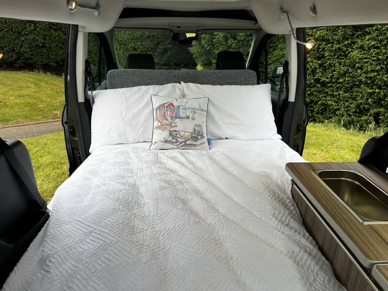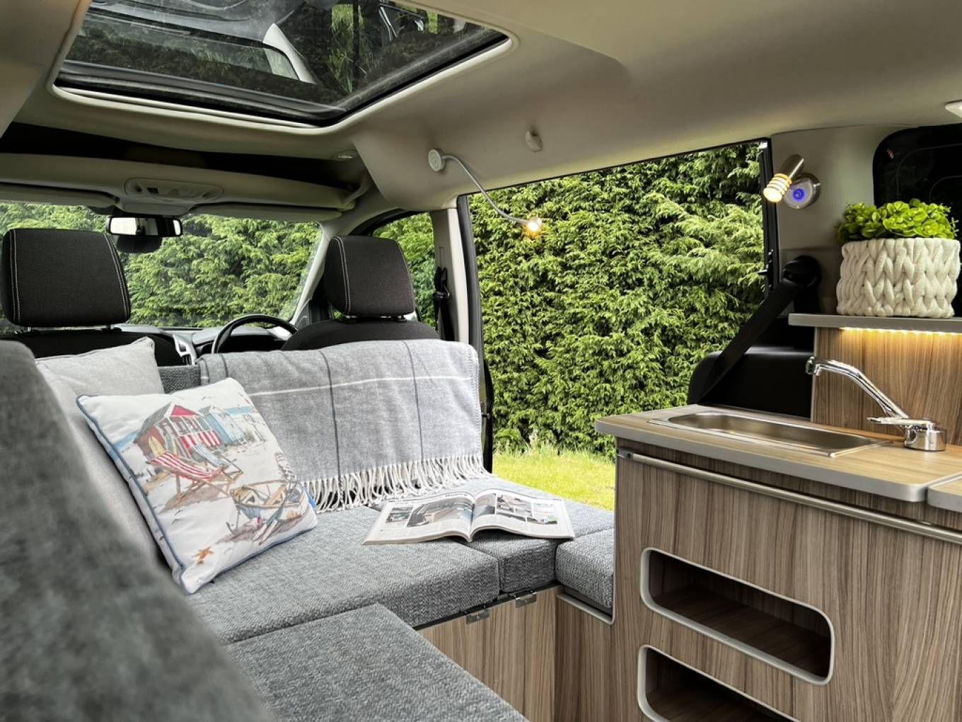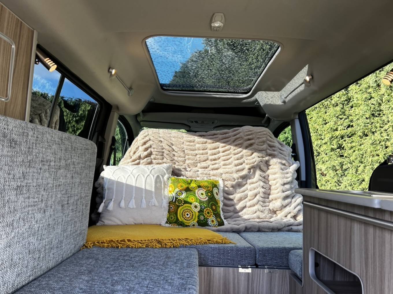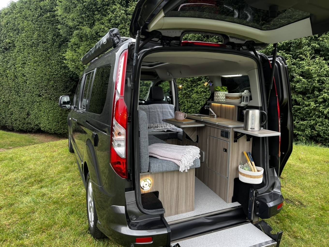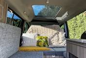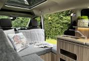 GO2 CAMPERS HOBBY XL 5 SEATER MICROCAMPER DIESEL AUTOMATIC with panoramic sunshine roof, heated front seats, air conditioning and 5 full size travelling seats. INside there is comfortable sleeping for 2 with room for 3 more in the additional safari room this diminutive camper can comfortably transport your family and friends around all year with the added bonus of being a 2 berth camper. Fitted with chrome finish sink, on board cold water, 240v hook up, 12v leisure battery with split charger, porta-potti, cooler, thermal insulated blinds, 2 metre awning, roof rails and cross bars. Great everyday vehicle capable of carrying up to 5 adults in comfort with sleeping inside for 2-3 people plus the option to add a roof tent or safari room for additional sleeping if required. Only 4.8 meters in length and with the added comfort of an automatic gearbox this camper makes light work of long journeys without being too long to live with as a daily driver. Sold with new mot, full service and 6 months warranty.