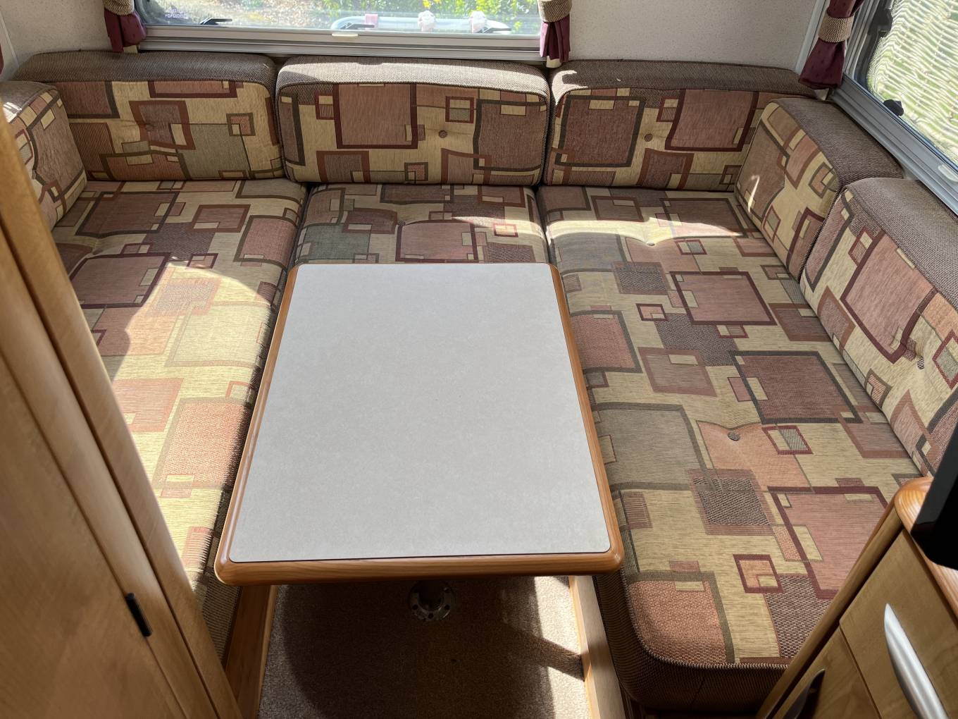 dinette area that converts into a double bed, and a rear U-shaped lounge that