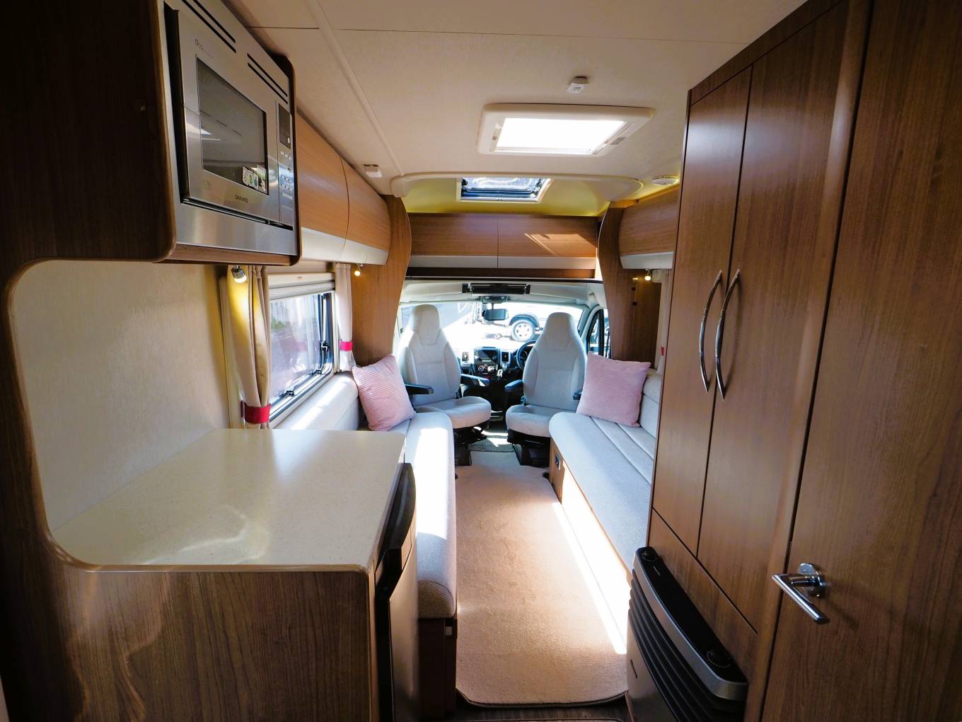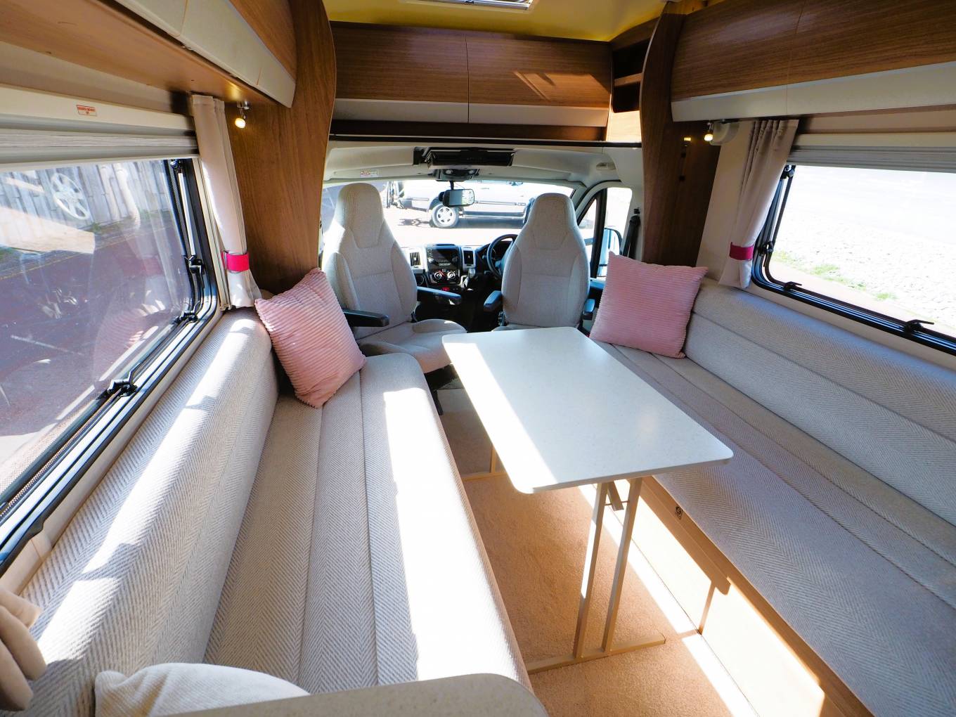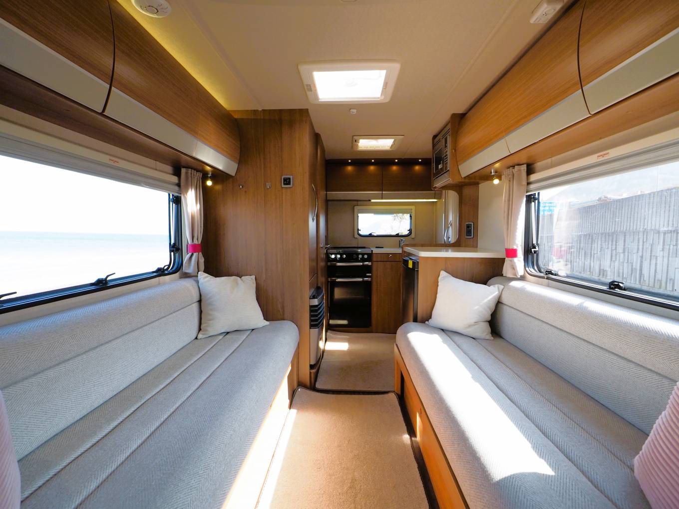 Ideal for an adventurous couple the Imala is fully featured with an end kitchen and private washroom. Large spacious lounge area with two long side sofas that can be utilsed as two single beds or converts swiftly to a large double bed. Drop in the occassional table to create a great place to dine and entertain. Plenty of storage from overhead lockers all round and a large wardrobe with hanging rail. Externally there is a tow bar.