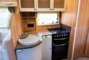 Ideal for an adventurous couple or family of 4 and weighing in at 3500Kg it can be driven on a standard UK licence. Heating and hot water provided by the Alde boiler and control panel and runs on both gas and electric. Twin leisure batteries with solar panel support provide 12v electrics and the gas locker holds two gas bottles (one provided). A rear 2 bike, bike carrier is fitted.
