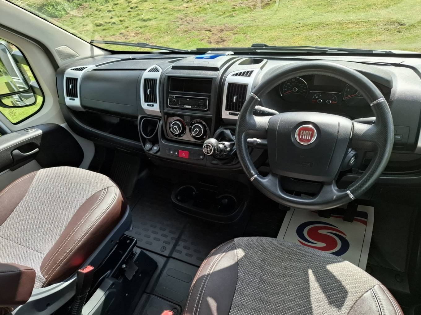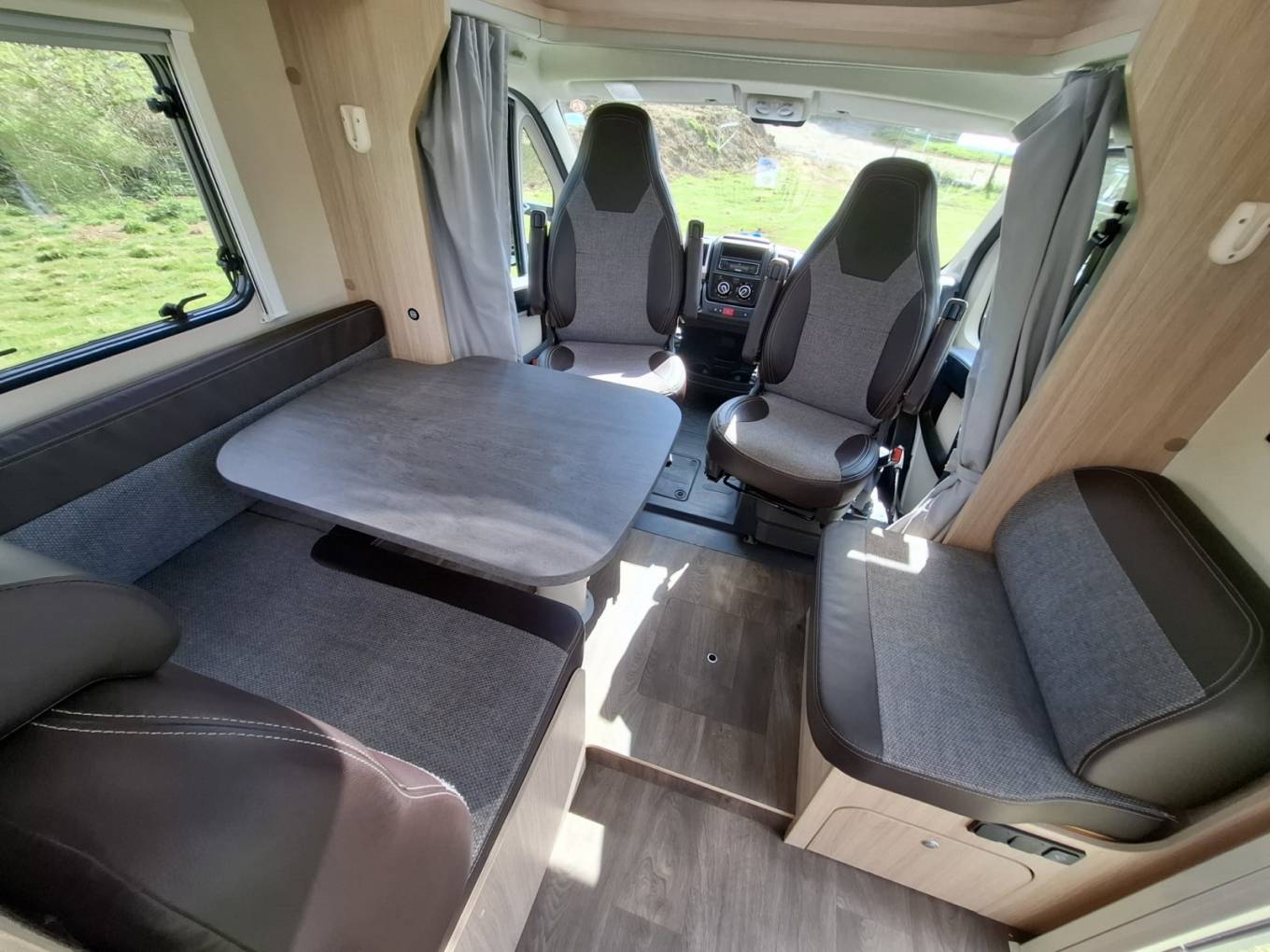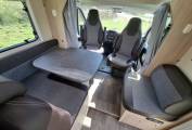 Behind the cab is there is nearside forward facing L-shaped seating (with two additional seat belts) around an adjustable table, with an opposing side sofa. This leisure/dining area can be enhanced using the swivel cab seats.