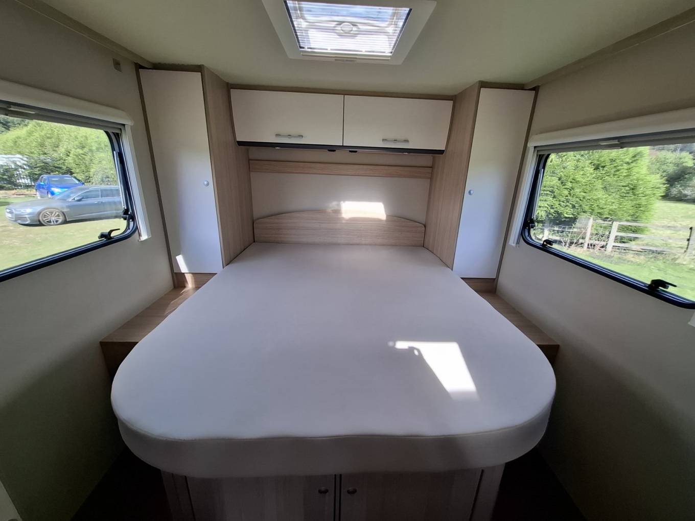 Stowed in the ceiling space above, there is an electronic drop down double berth.