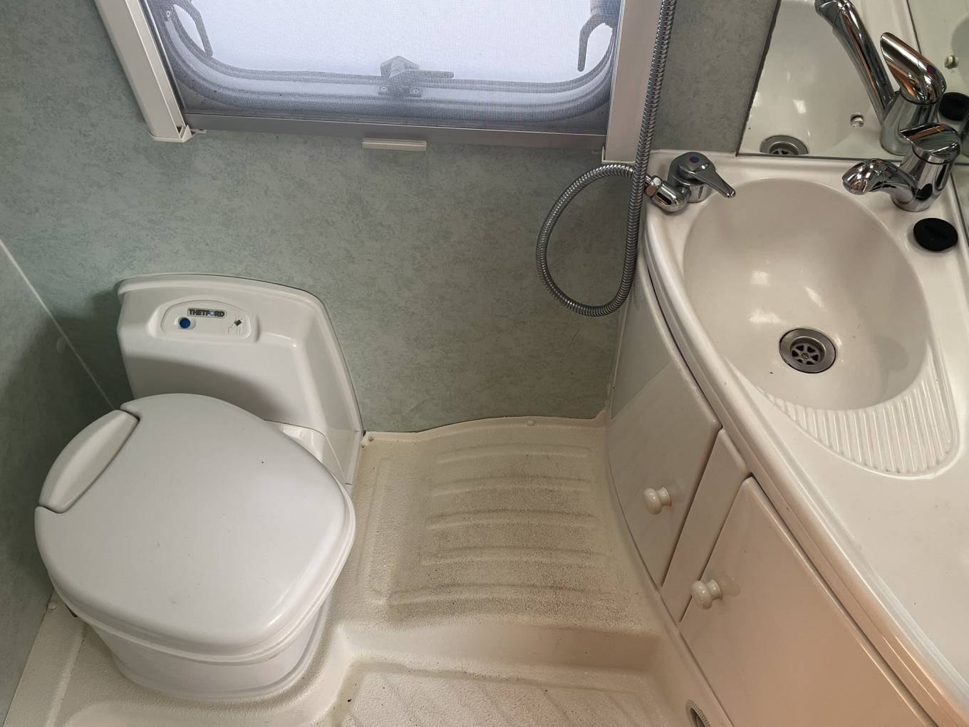 Washroom - A useful mid-vehicle washroom and shower enclosure.