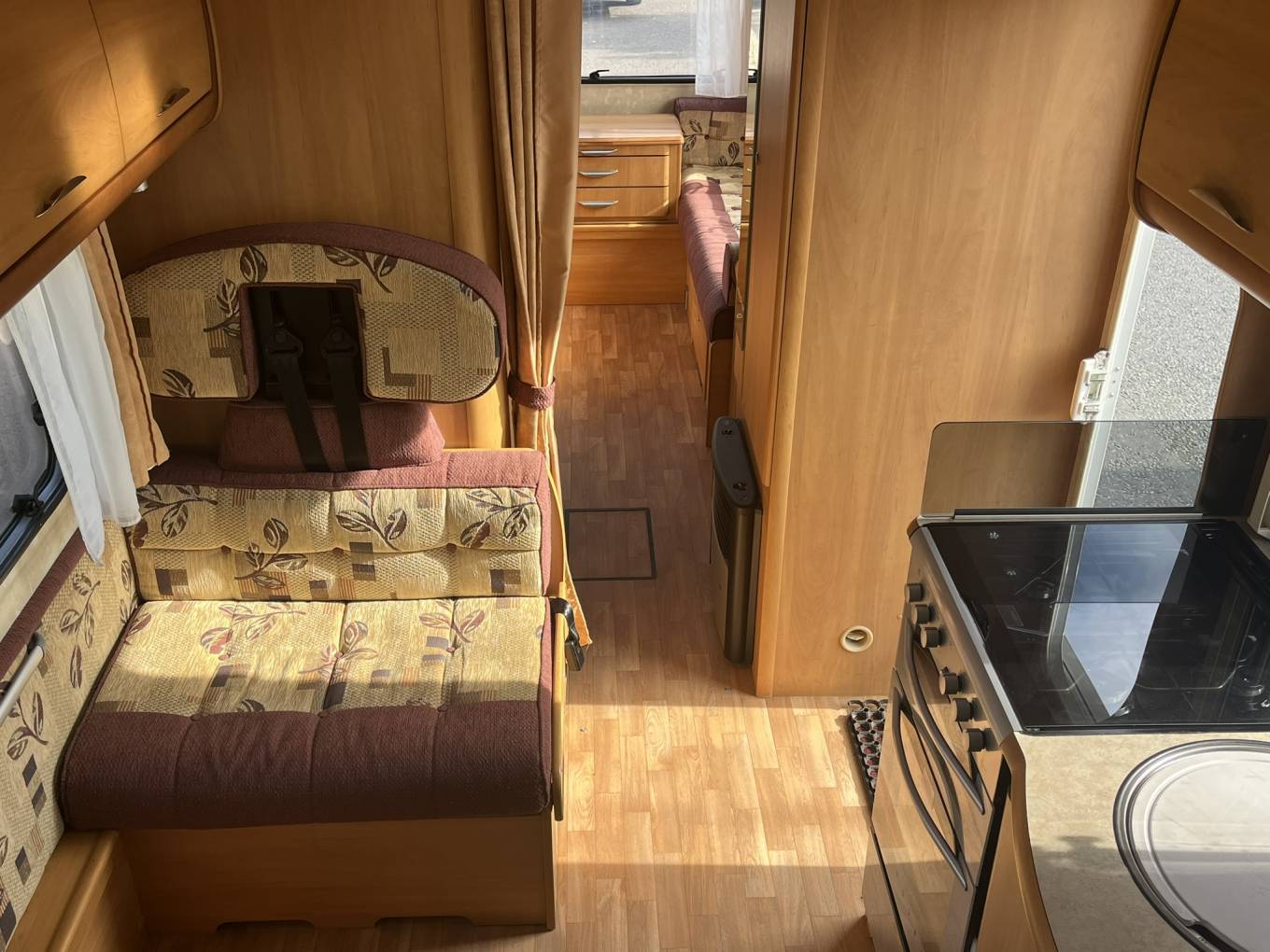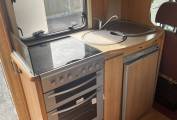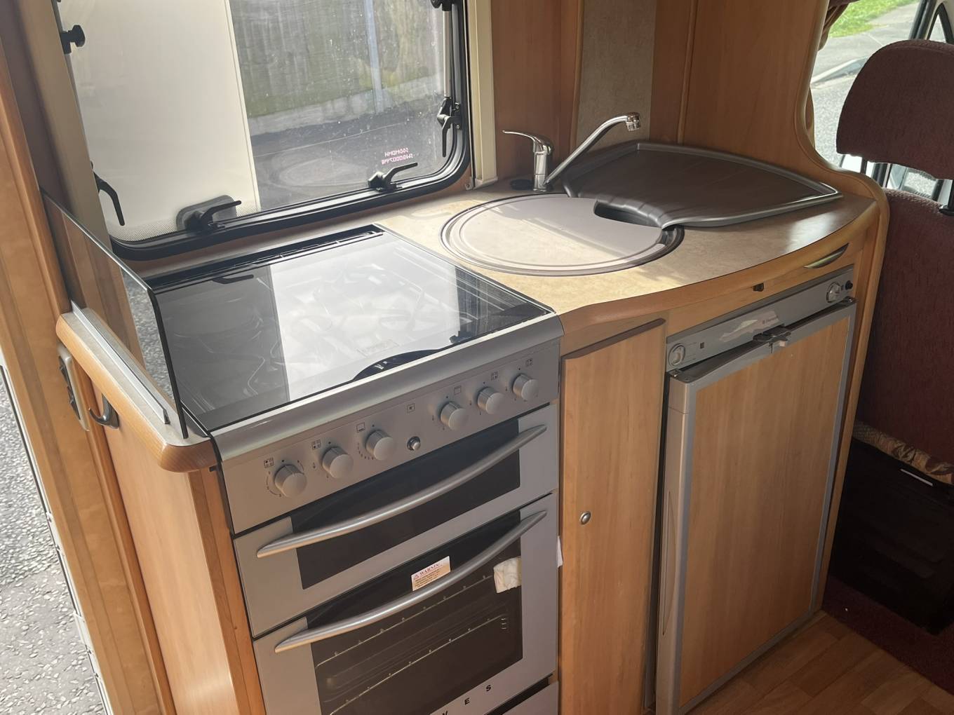 Kitchen - Well laid out centre kitchen with a full-sized oven and grill. Thetford fridge with separate freezer compartment. Plenty of storage. Sink with stow away drainage board.