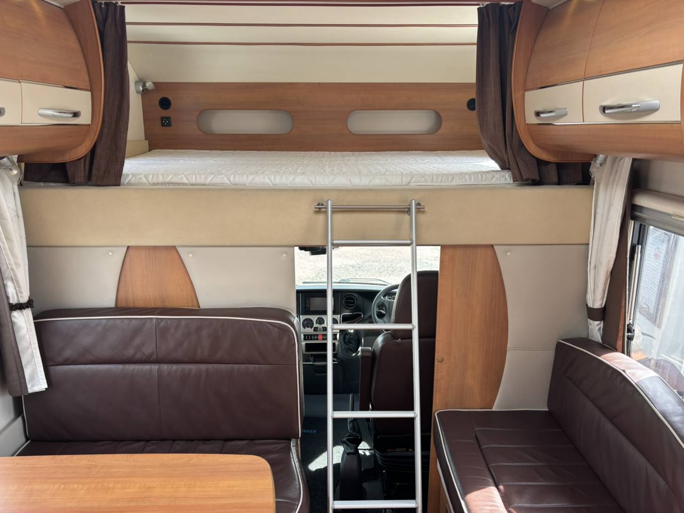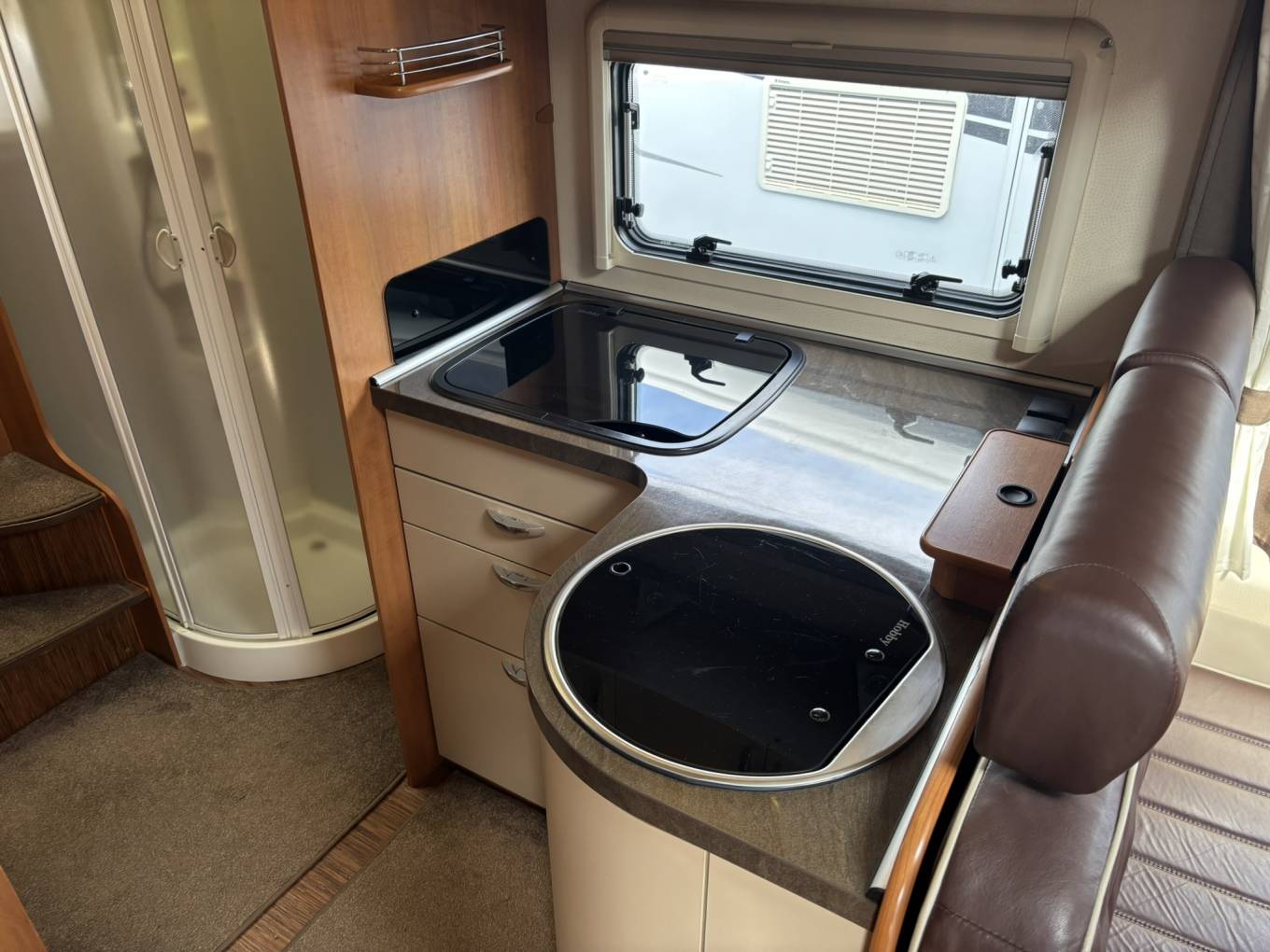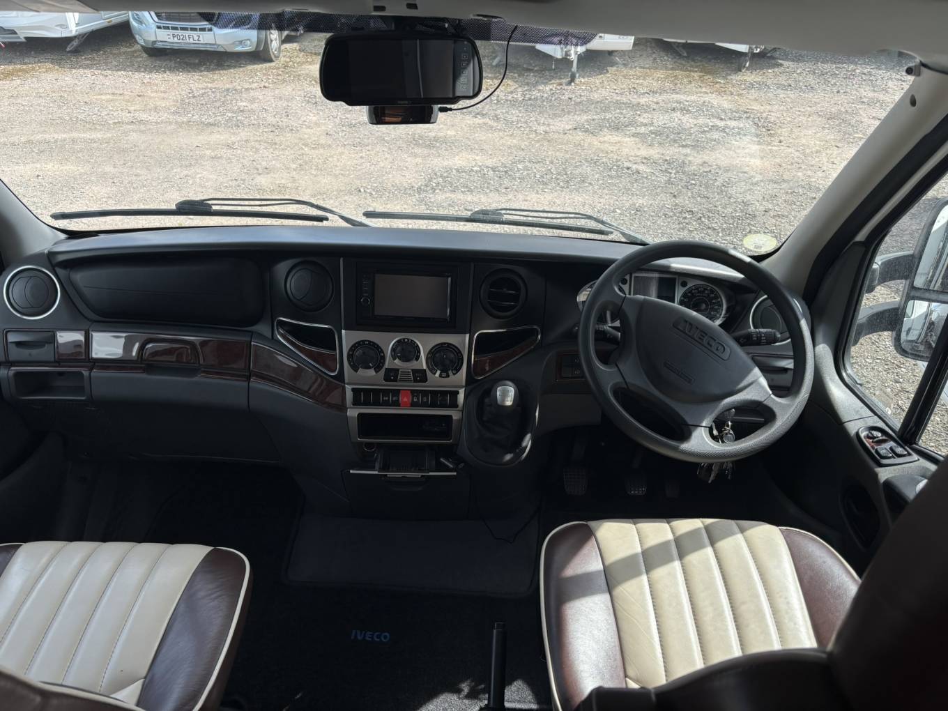 This motorhome comes with (but not limited to): Hydraulic levelling system, 150w Solar panel, tow bar (up to 3.5tons), awning, 3 leisure batteries, two tv mounts, reversing camera, 1500w inverter, twin cylinder Gaslow, Rear air suspension, Payload of 1100kg, aerial, and full leather upholstery throughout