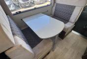 This popular model offers a fantastic U-shaped rear lounge that converts into a large double bed, a generous overcab bed, and a dinette that also transforms into additional sleeping space – sleeping up to 6 people comfortably.