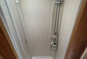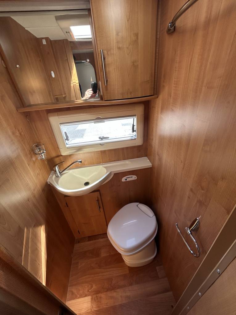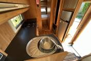 bathroom area can be shut off from the rest of the motorhome. Across from the habitation door is the kitchen area and